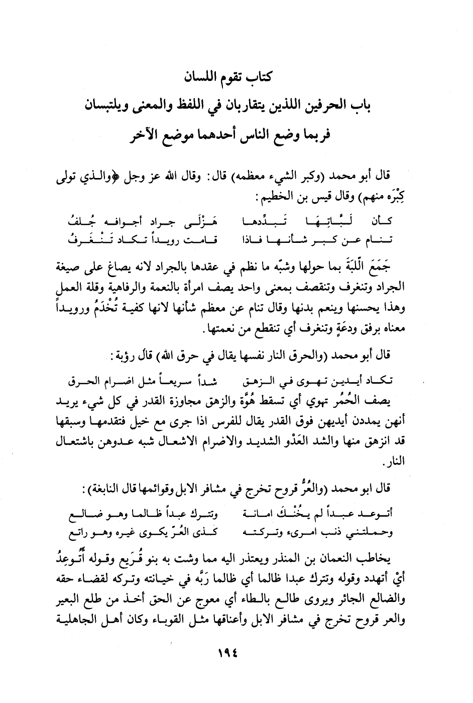 باب الحرفين اللذين يتقاربان في اللفظ والمعنى ويلتبسان