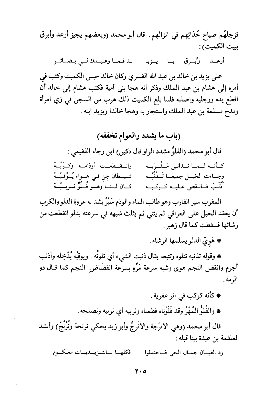 قال أبو محمد " الفلّو مشدد الواو قال دكين " ابن رجاء الفقيمي: