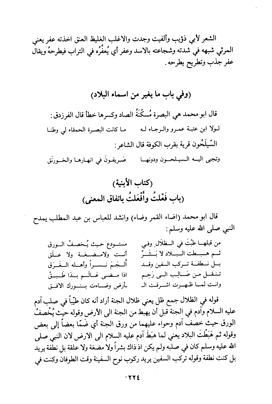 قال أبو محمد " أضاء القمر وضاء " وأنشد للعباس بن عبد المطلب يمدح النبي صلى الله عليه وسلم: