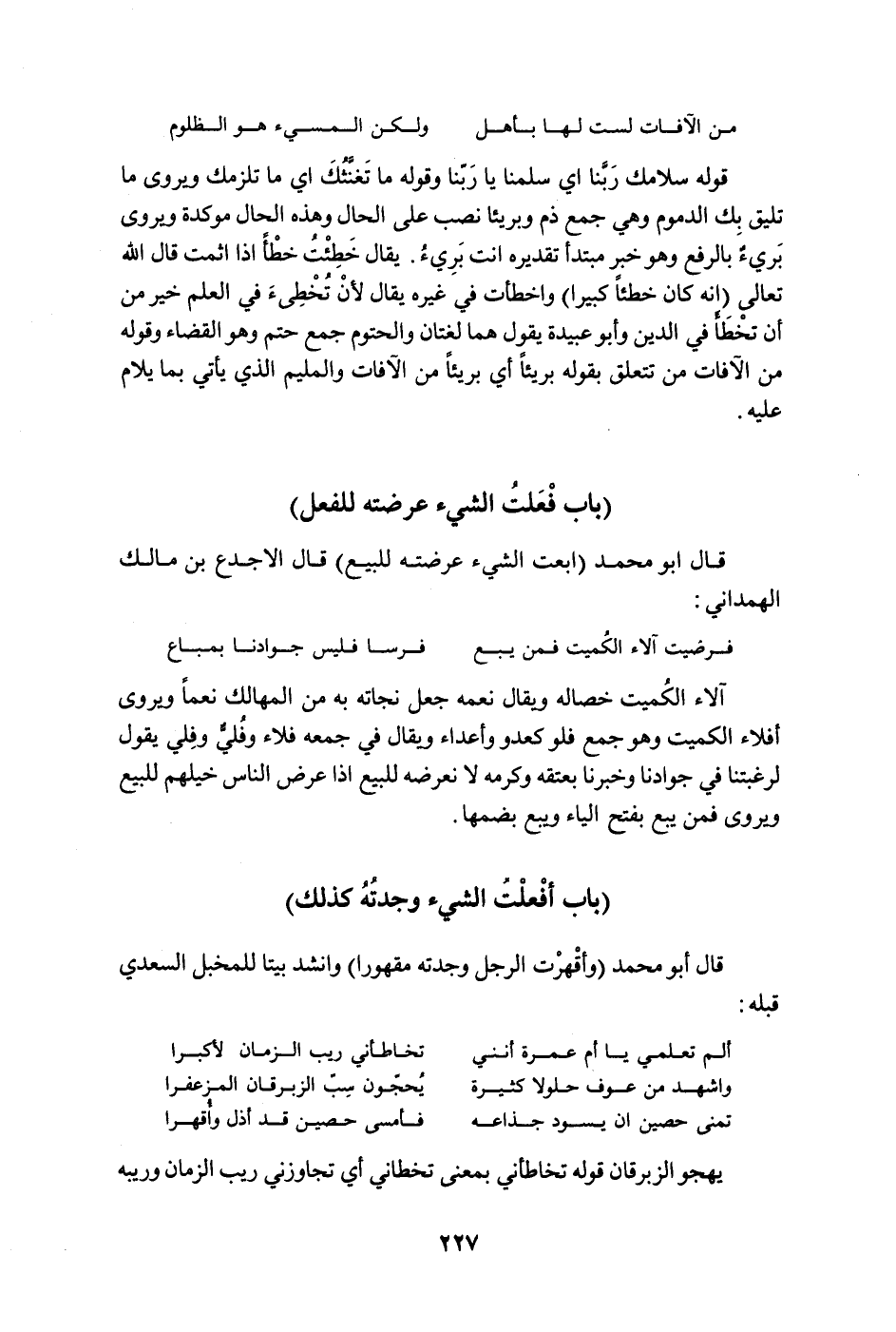 قال أبو محمد " أبعت الشيء عرضته للبيع " قال الأجدع بن مالك الهمداني: