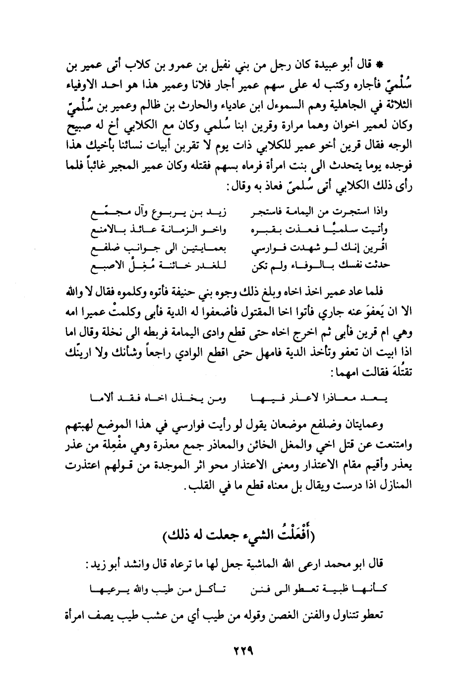 " أفعلت الشيء جعلت له ذلك " قال أبو محمد أرعى الله الماشية جعل لها ما ترعاه قال وأنشد أبو زيد:
