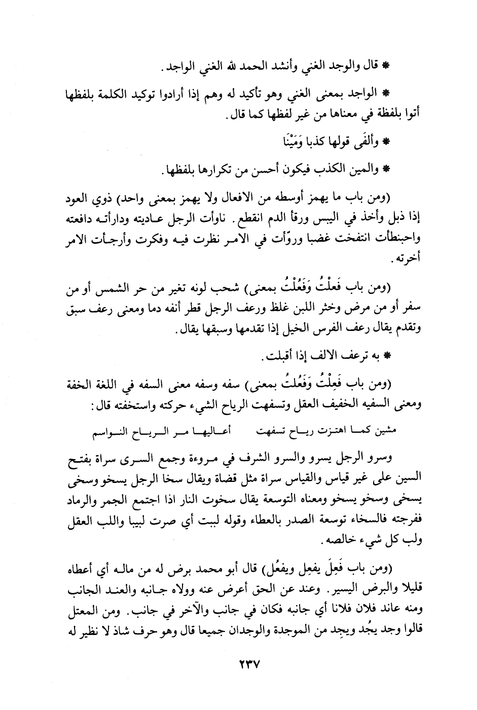 قال أبو محمد برض له من ماله أي أعطاه قليلا والبرض اليسير. وعند عن الحق أعرض عنه وولاه جانبه والعند الجانب ومنه عاند فلان فلانا أي جانبه فكان في جانب والآخر في جانب. ومن المعتل قالوا وجد يجد ويجد من الموجدة والوجدان جميعا قال وهو حرف شاذ لا نظير له