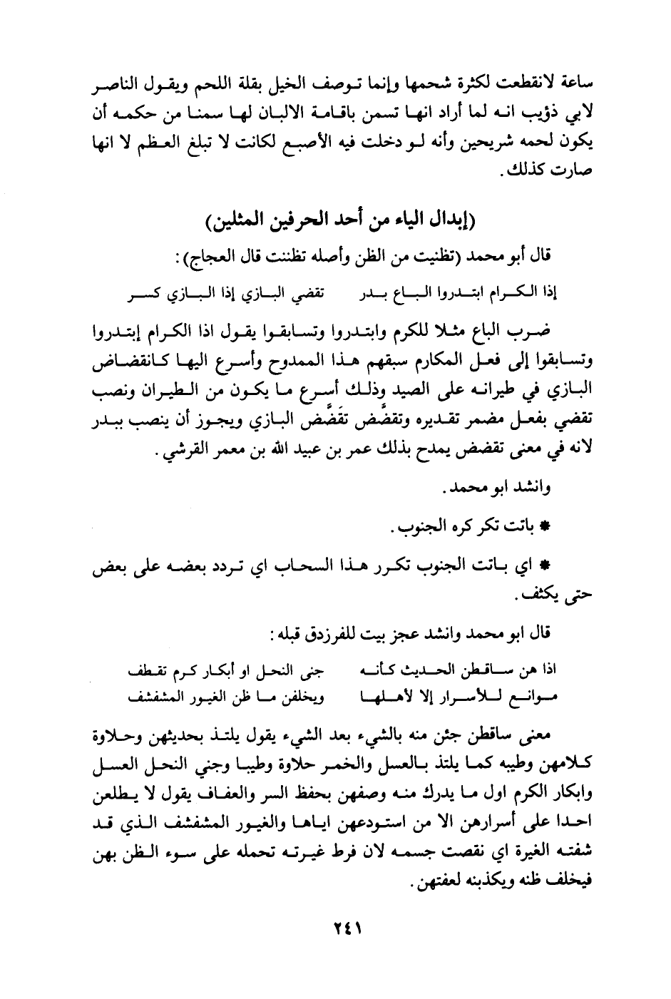 قال أبو محمد وأنشد عجز بيت للفرزدق قبله: