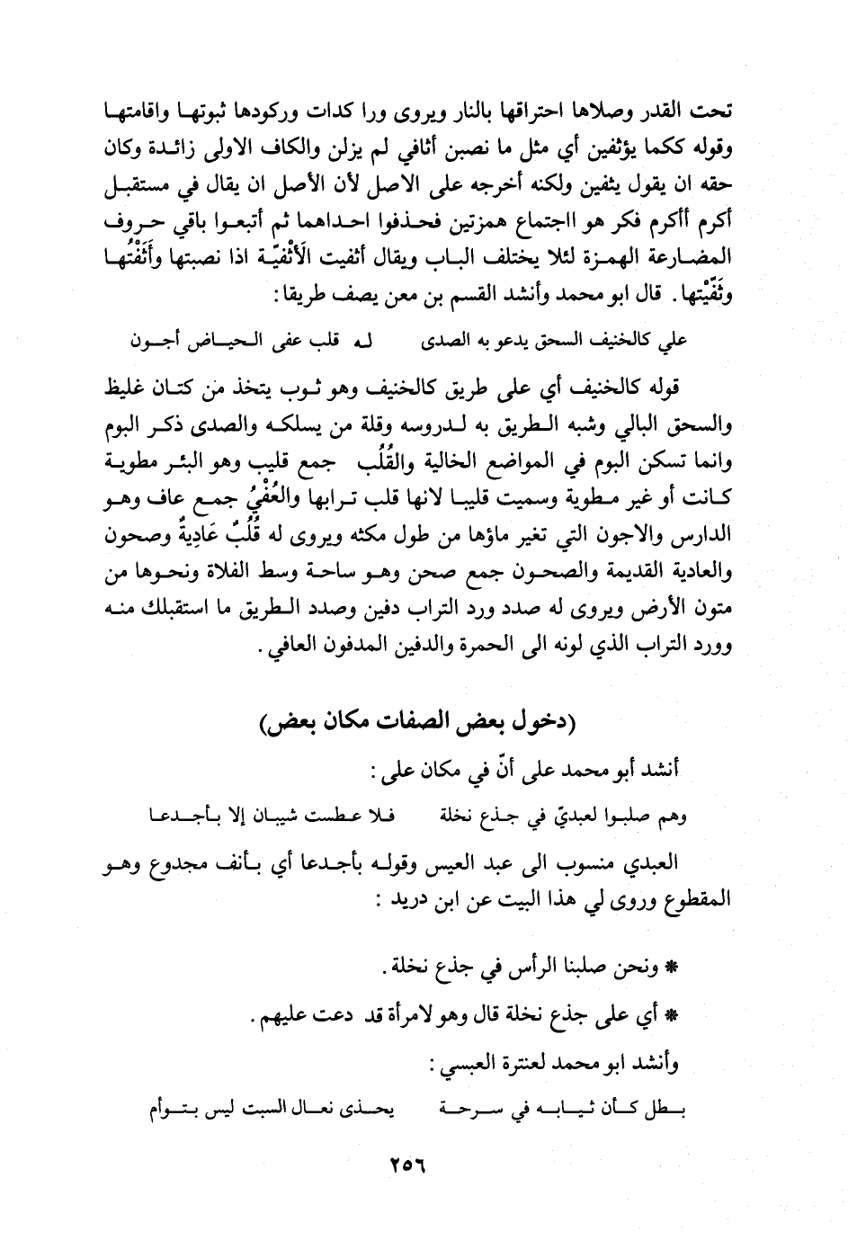 تحت القدر وصلاها احتراقها بالنار ويروى وركودها ثبوتها وإقامتها وقوله ككما يؤثفين أي مثل ما نصبن أثافي لم يزلن والكاف الأولى زائدة وكان حقه أن يقول يثفين ولكنه أخرجه على الأصل لأن الأصل أن يقال في مستقبل أكرم أأكرم فكر هو اجتماع همزتين فحذفوا إحداهما ثم اتبعوا باقي حروف المضارعة الهمزة لئلا يختلف الباب ويقال أثفيت الأثفيّة إذا نصبتها واثفتها وثفيتها. قال أبو محمد وأنشد القسم بن معن يصف طريقا: