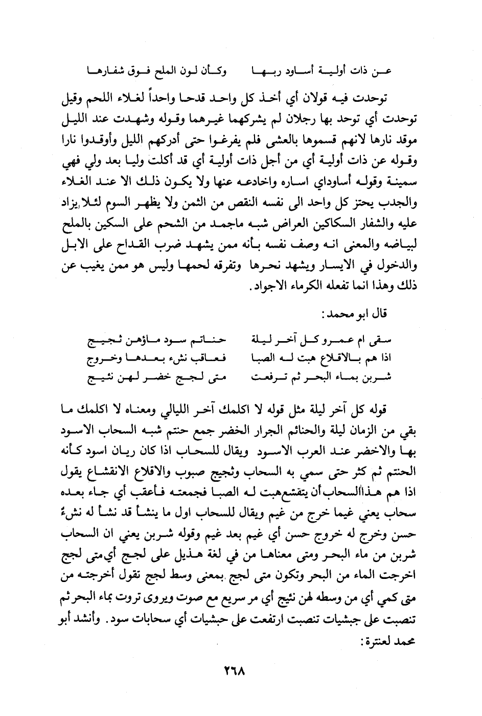 قال أبو محمد:؟ سقى أم عمرو كل آخر ليلة حناتم سود ماؤهن ثجيج