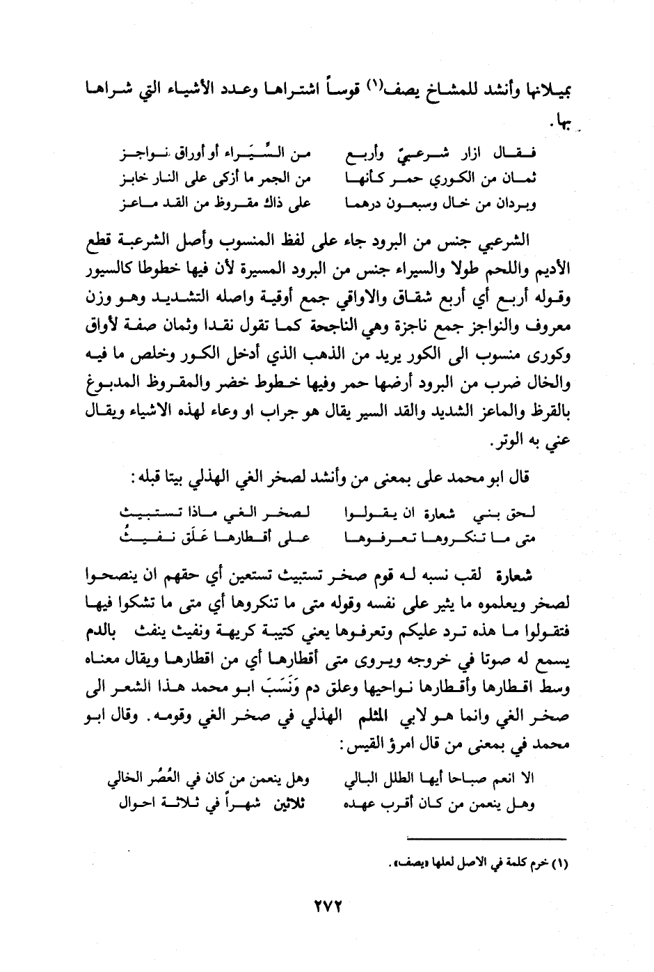 قال أبو محمد على بمعنى من وأنشد لصخر الغي الهذلي بيتا قبله: