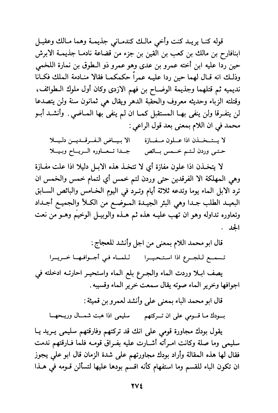 قوله كنا يريد كنت وأخي مالك كندماني جذيمة وهما مالك وعقيل ابنا فارح بن مالك بن كعب بن القين بن جزء من قضاعة نادما جذيمة الأبرش حين ردا عليه ابن أخته عمرو بن عدى وهو عمرو ذو الطوق بن نمارة اللخمي وذلك أنه قال لهما حين ردا عليه عمراً حكمكما فقالا منادمة الملك فكانا نديميه ثم قتلهما وجذيمة الوضاح بن فهم الأزدي وكان أول ملوك الطوائف، وقتلته الزباء وحديثه معروف والحقبة الدهر ويقال هي ثمانون سنة ولن يتصدعا لن يتفرقا ولن ينفى بها المستقبل كما أن لم ينفى بها الماضي. وأنشد أبو محمد في أن اللام بمعنى بعد قول الراعي: