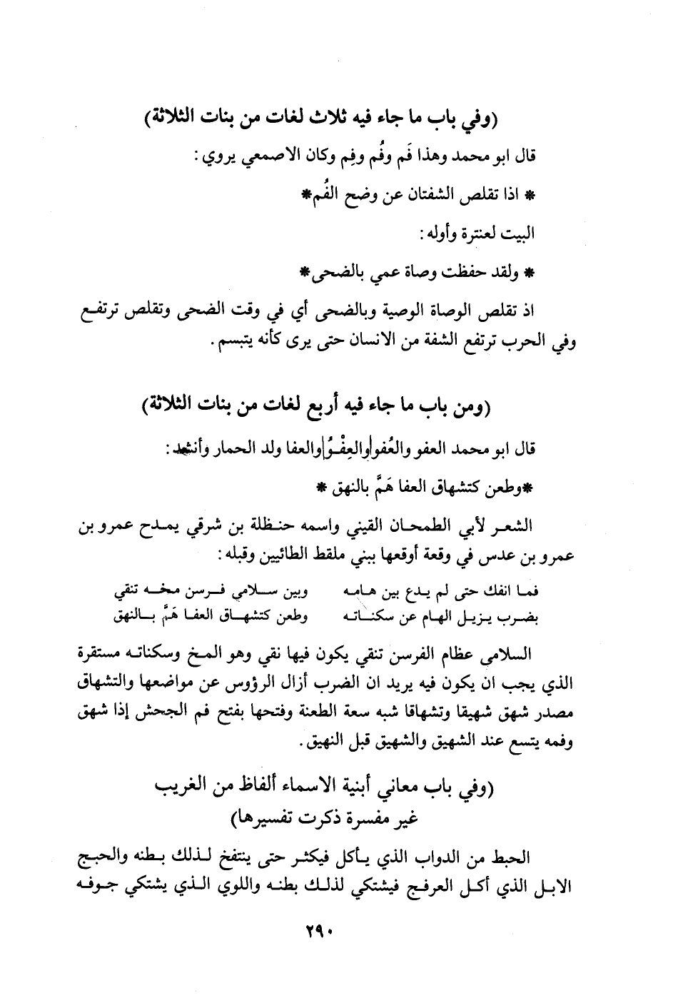 وفي باب معاني أبنية الأسماء ألفاظ من الغريب غير مفسرة ذكرت تفسيرها