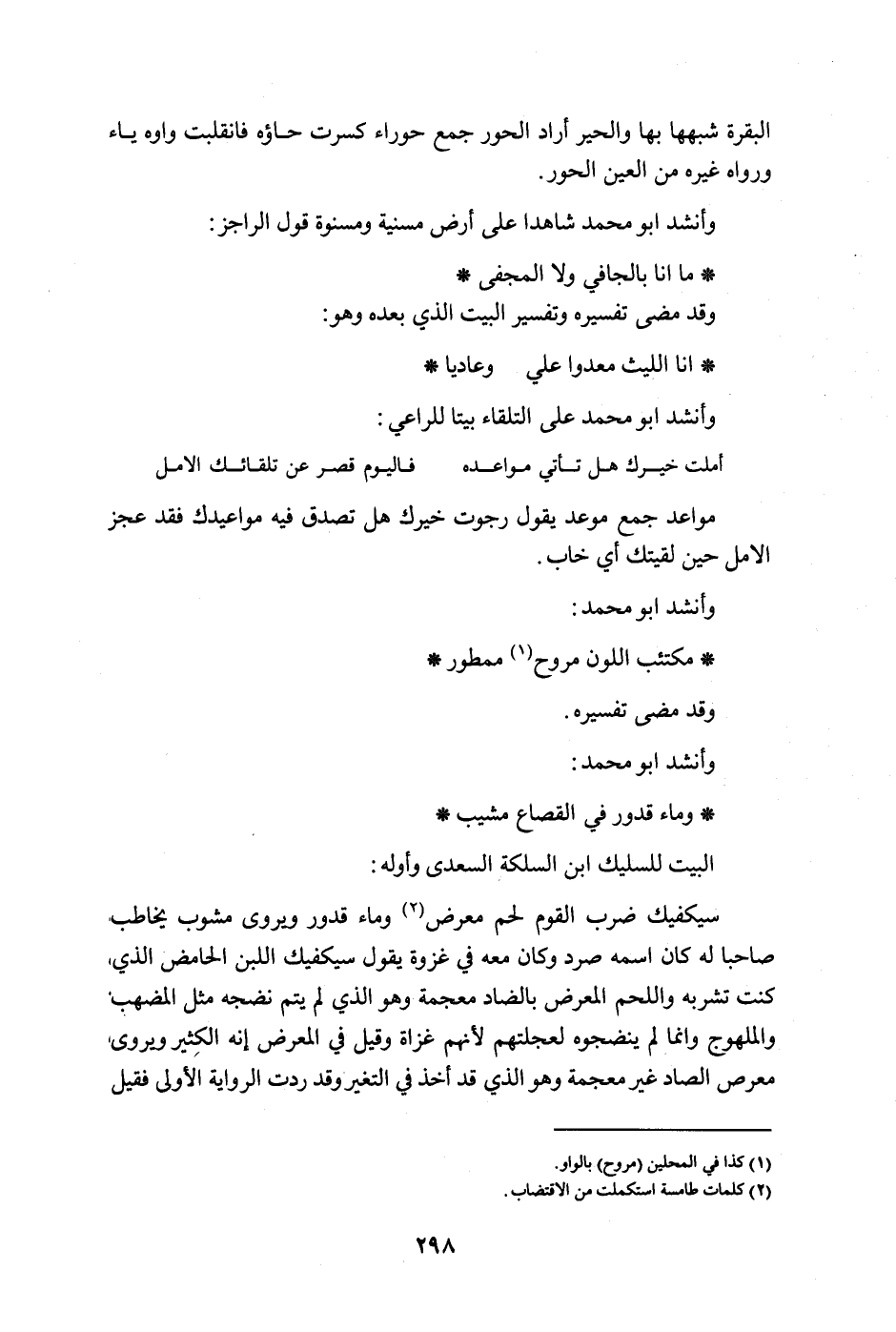 وأنشد أبو محمد شاهدا على أرض مسنية ومسنوة قول الراجز: