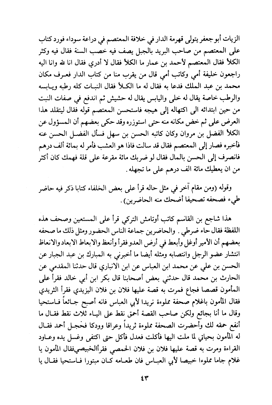 وقوله " ومن مقام آخر في مثل حاله قرأ على بعض الخلفاء كتابا ذكر في حاضر طيء فصحفه تصحيفا أضحك منه الحاضرين ".