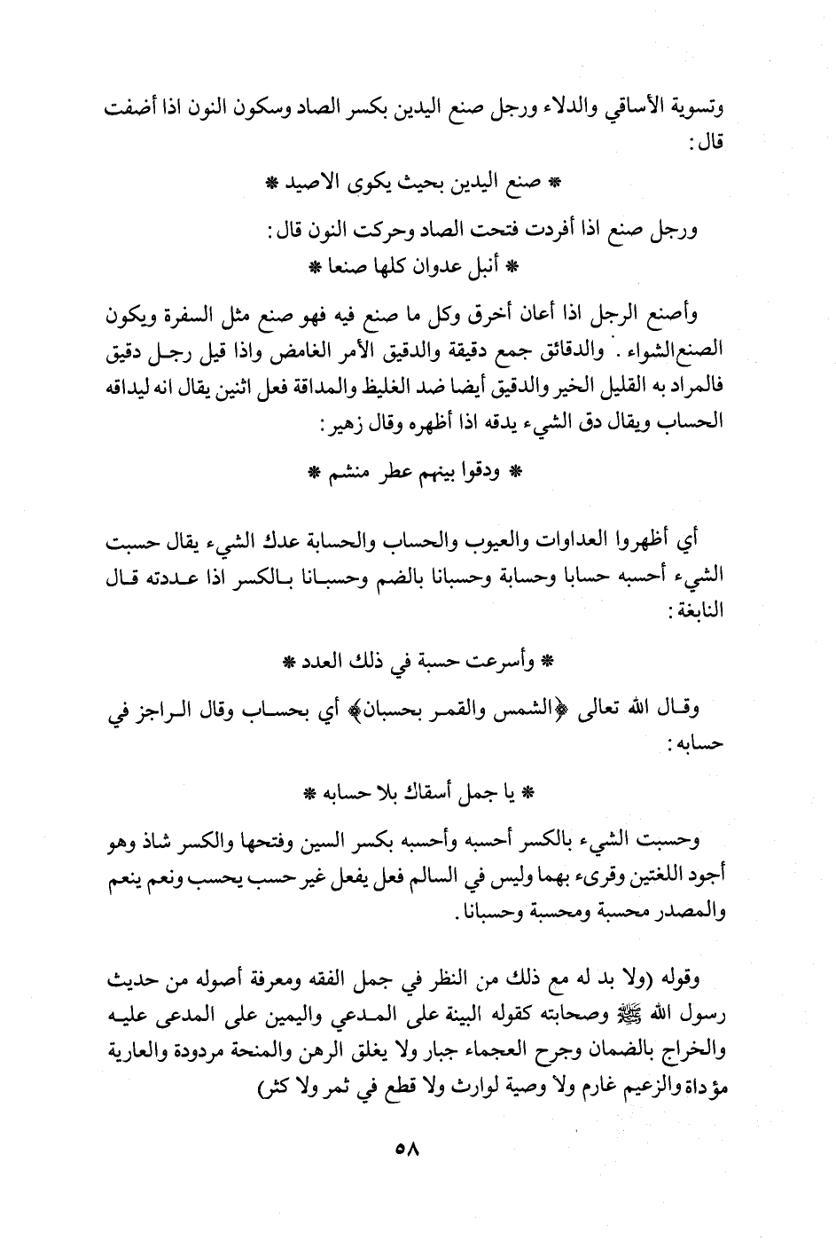 وقال الله تعالى " الشمس والقمر بحسبان " أي بحساب وقال الراجز في حسابه: