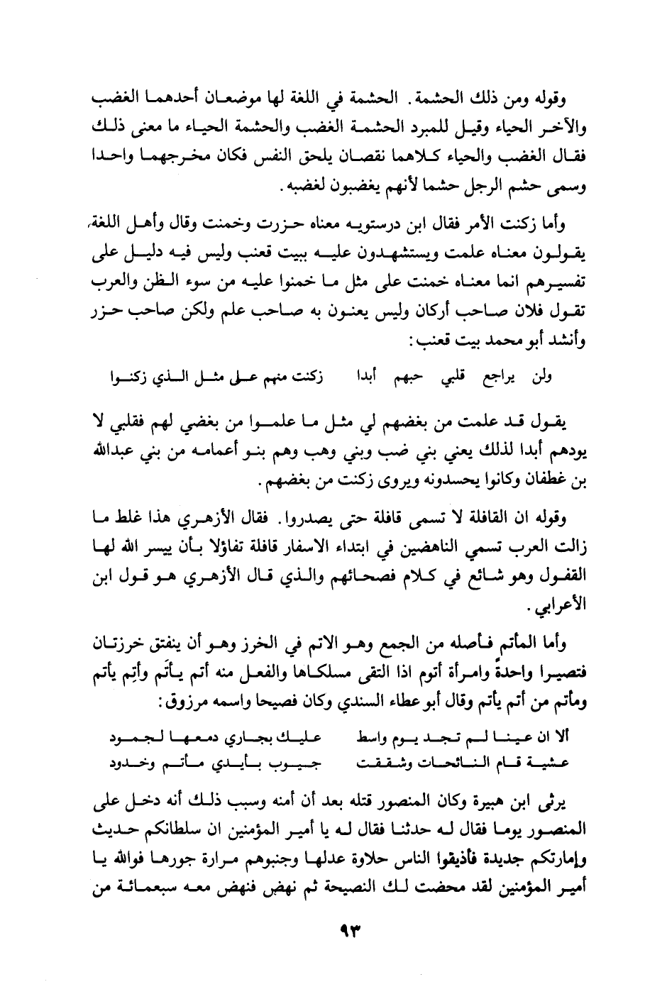 وقوله من ذلك الحشمة. الحشمة في اللغة لها موضعان أحدهما الغضب والآخر الحياء وقيل للمبرد الحشمة الغضب والحشمة الحياء ما معنى ذلك فقال الغضب والحياء كلاهما نقصان يلحق النفس فكان مخرجهما واحدا وسمي حشم الرجل حشماً لأنهم يغضبون لغضبه.