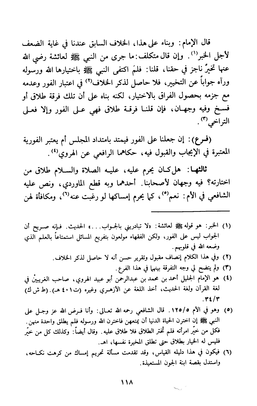 وَإِن قَالَ متكلف مَا جرى من النَّبِي صلى الله عَلَيْهِ وَسلم لعَائِشَة رَضِي الله عَنْهَا تخير ناجز فِي حَقنا قُلْنَا فَلم اكْتفى النَّبِي صلى الله عَلَيْهِ وَسلم باختيارها الله وَرَسُوله وَرَآهُ جَوَابا عَن التَّخْيِير فَلَا حَاصِل لذكر الْخلاف فِي اعْتِبَار الْفَوْر وَعَدَمه مَعَ جزمه بِحُصُول الْفِرَاق بِالِاخْتِيَارِ لكنه بناه على أَن تِلْكَ فرقة طَلَاق طَلَاق أَو فسخ وَفِيه وَجْهَان فَإِن قُلْنَا فرقة طَلَاق فَهِيَ على الْفَوْر وَإِلَّا فعلى التَّرَاخِي