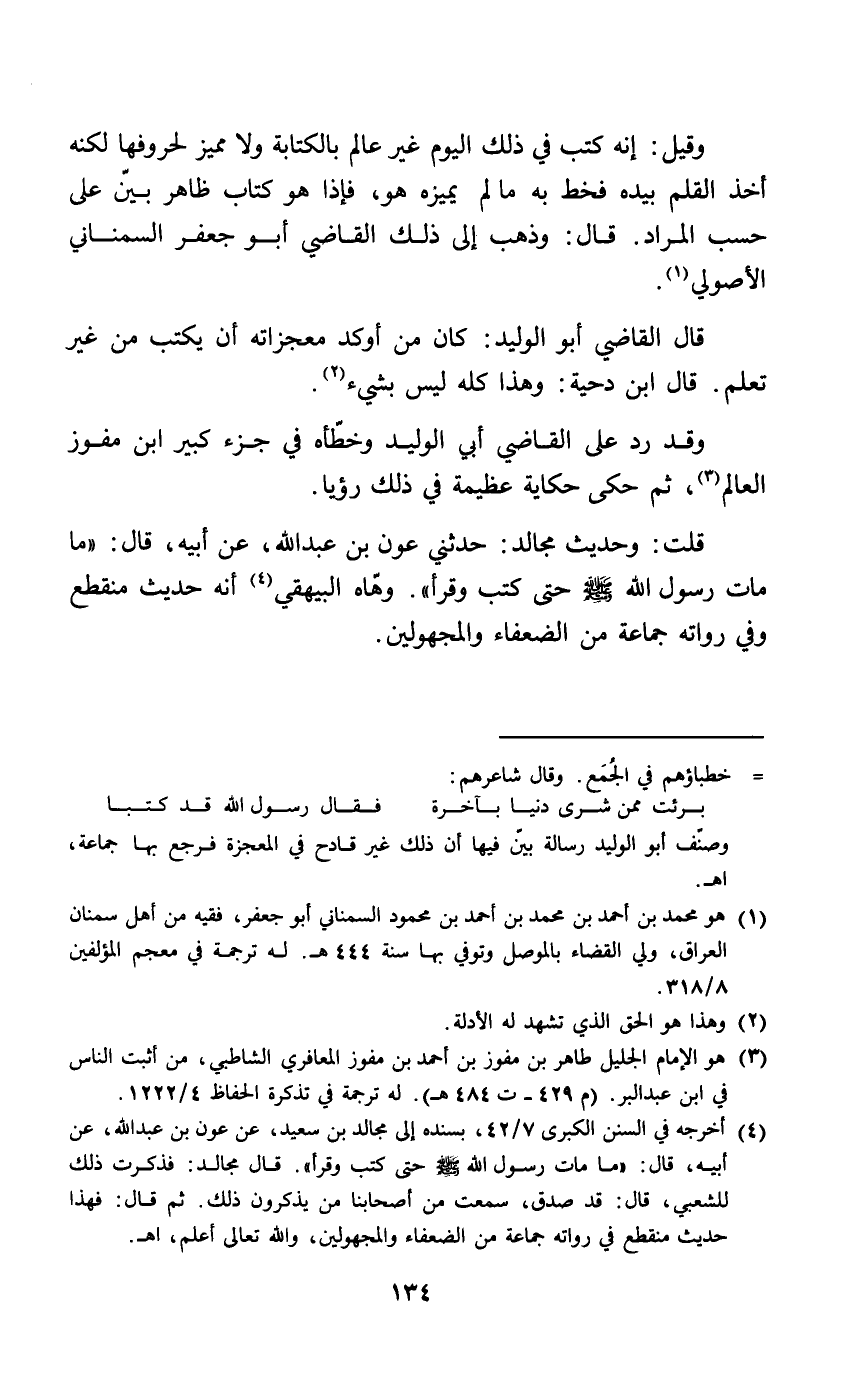 قَالَ القَاضِي أَبُو الْوَلِيد كَانَ من أوكد معجزاته أَن يكْتب من غير تعلم