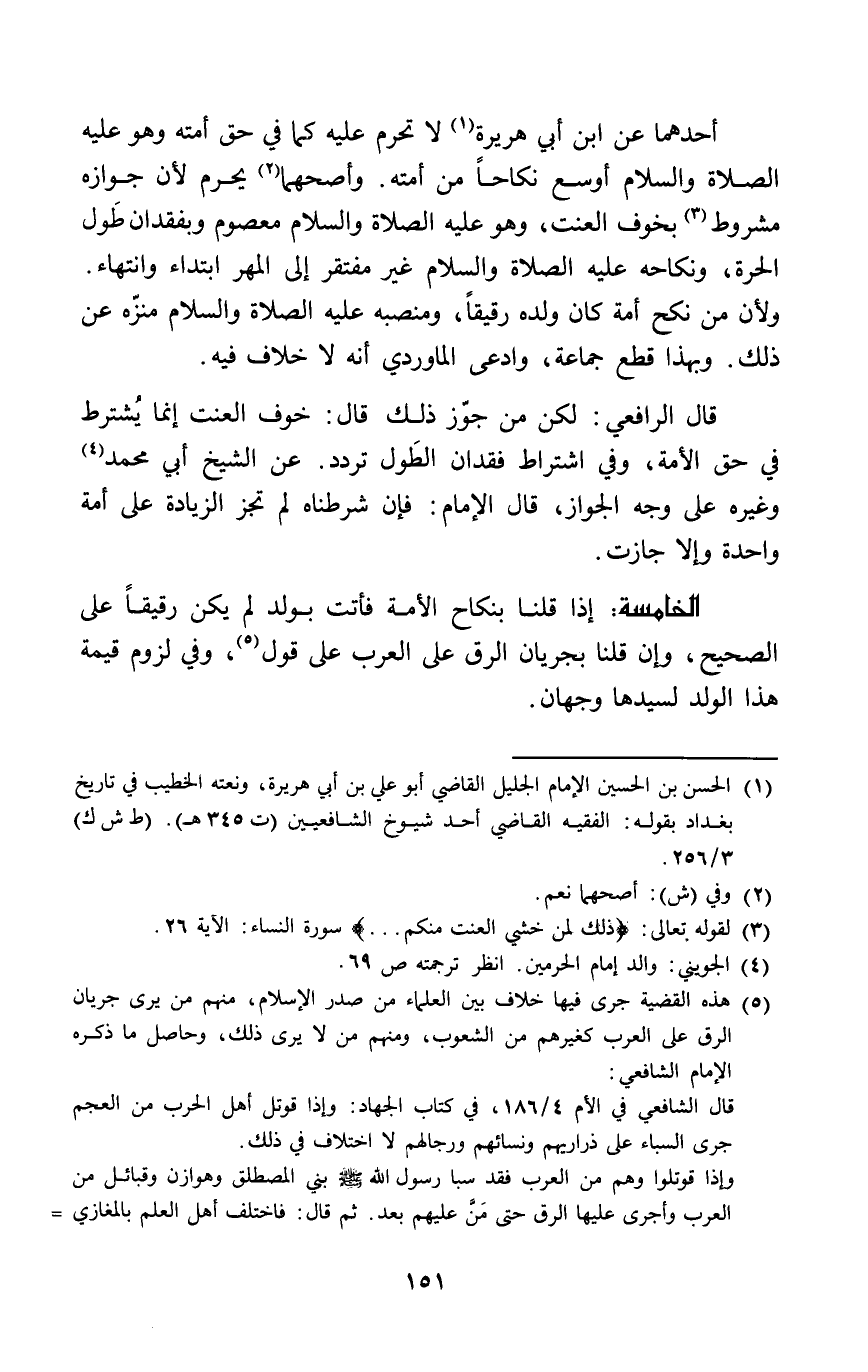 وَلِأَن من نكح أمة كَانَ وَلَده رَقِيقا ومنصبه عَلَيْهِ الصَّلَاة وَالسَّلَام منزه عَن عَن ذَلِك