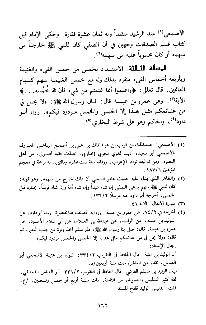 وَعَن عَمْرو بن عَنْبَسَة قَالَ قَالَ رَسُول الله صلى الله عَلَيْهِ وَسلم (لَا يحل لي من غنائمكم مثل هَذَا إِلَّا الْخمس وَالْخمس مَرْدُود فِيكُم)