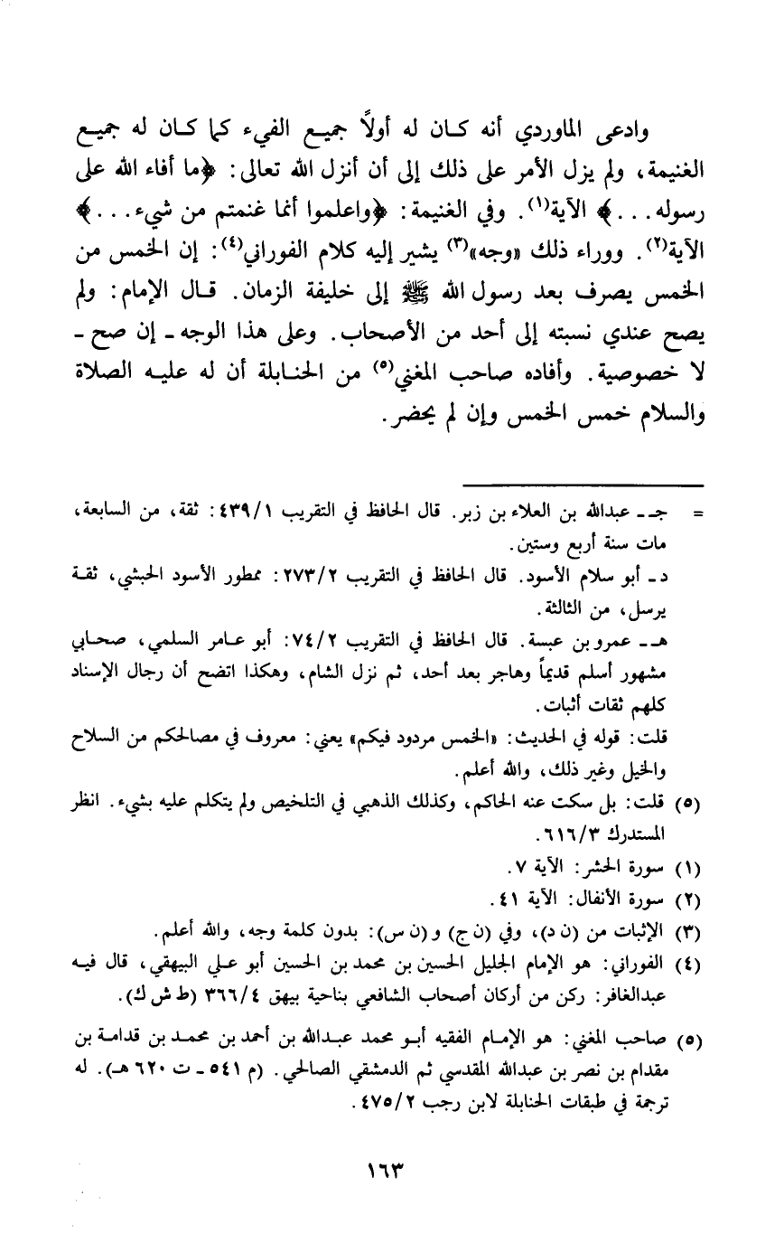 وأفاده صَاحب الْمُغنِي من الْحَنَابِلَة أَن لَهُ عَلَيْهِ الصَّلَاة وَالسَّلَام خمس الْخمس وَإِن لم يحضر