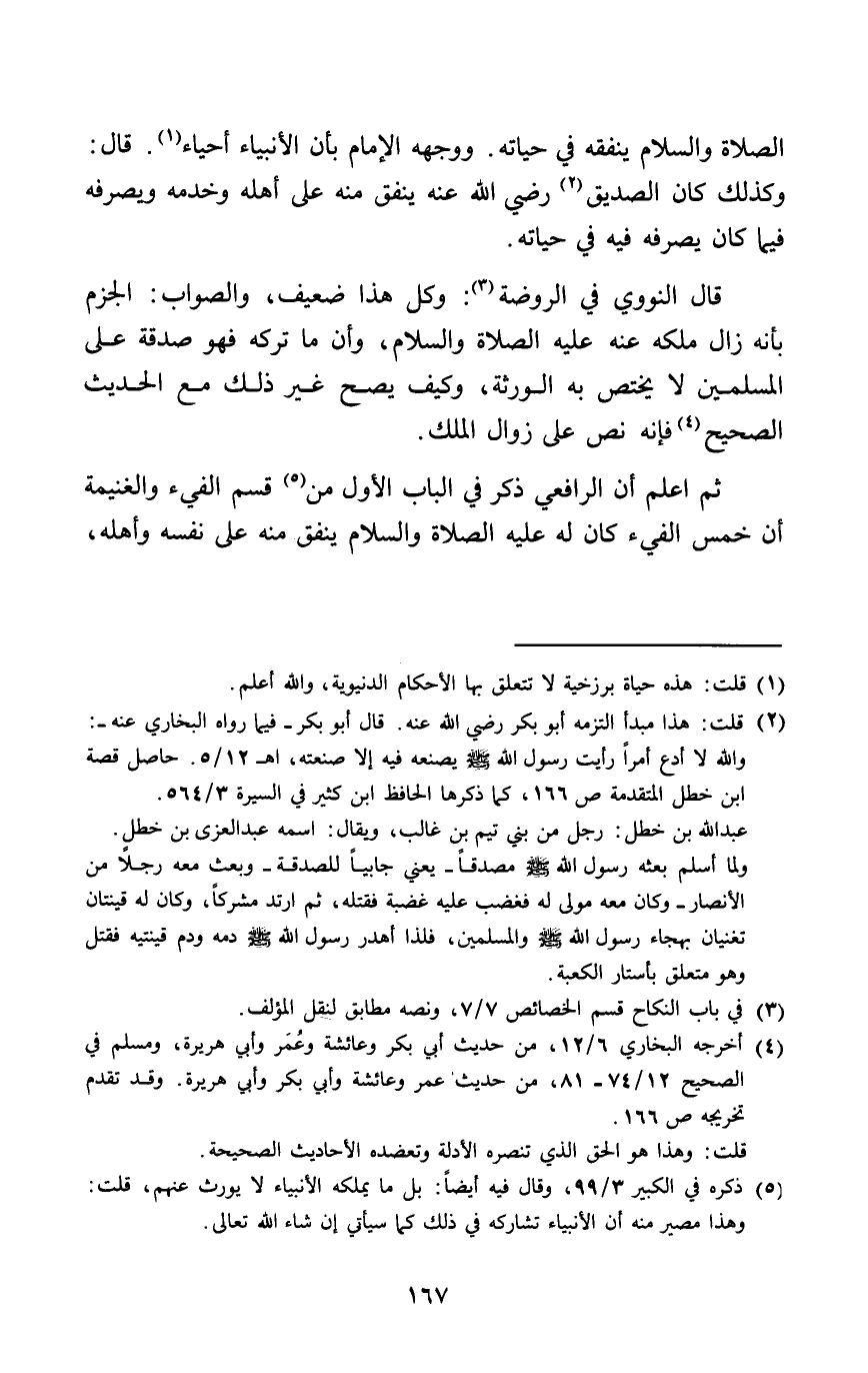 قَالَ النَّوَوِيّ فِي الرَّوْضَة وكل هَذَا ضَعِيف وَالصَّوَاب الْجَزْم بِأَنَّهُ زَالَ ملكه عَنهُ عَلَيْهِ الصَّلَاة وَالسَّلَام وَأَن مَا تَركه فَهُوَ صَدَقَة على الْمُسلمين لَا يخْتَص بِهِ الْوَرَثَة وَكَيف يَصح غير ذَلِك مَعَ الحَدِيث الصَّحِيح فَإِنَّهُ نَص على زَوَال الْملك