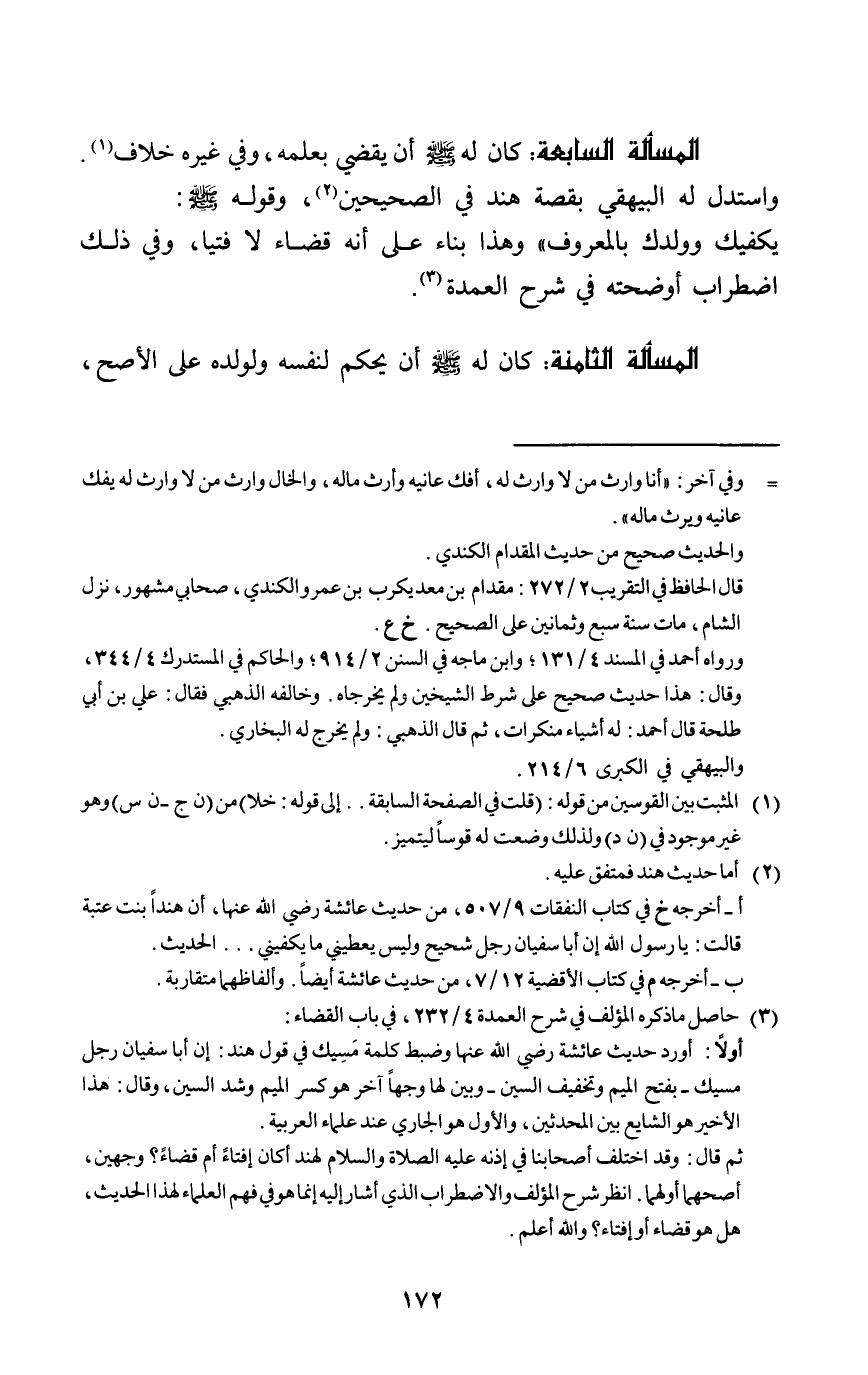الْمَسْأَلَة الثَّامِنَة كَانَ لَهُ صلى الله عَلَيْهِ وَسلم أَن يحكم لنَفسِهِ ولولده على الْأَصَح
