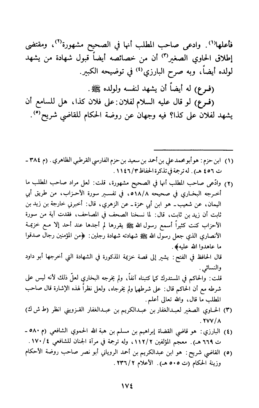 وَادّعى صَاحب الْمطلب أَنَّهَا فِي الصَّحِيح مَشْهُورَة وَمُقْتَضى إِطْلَاق الْحَاوِي الصَّغِير أَن من خَصَائِصه أَيْضا قبُول شَهَادَة من يشْهد لوَلَده أَيْضا وَبِه صرح الْبَارِزِيّ فِي تَوْضِيحه الْكَبِير