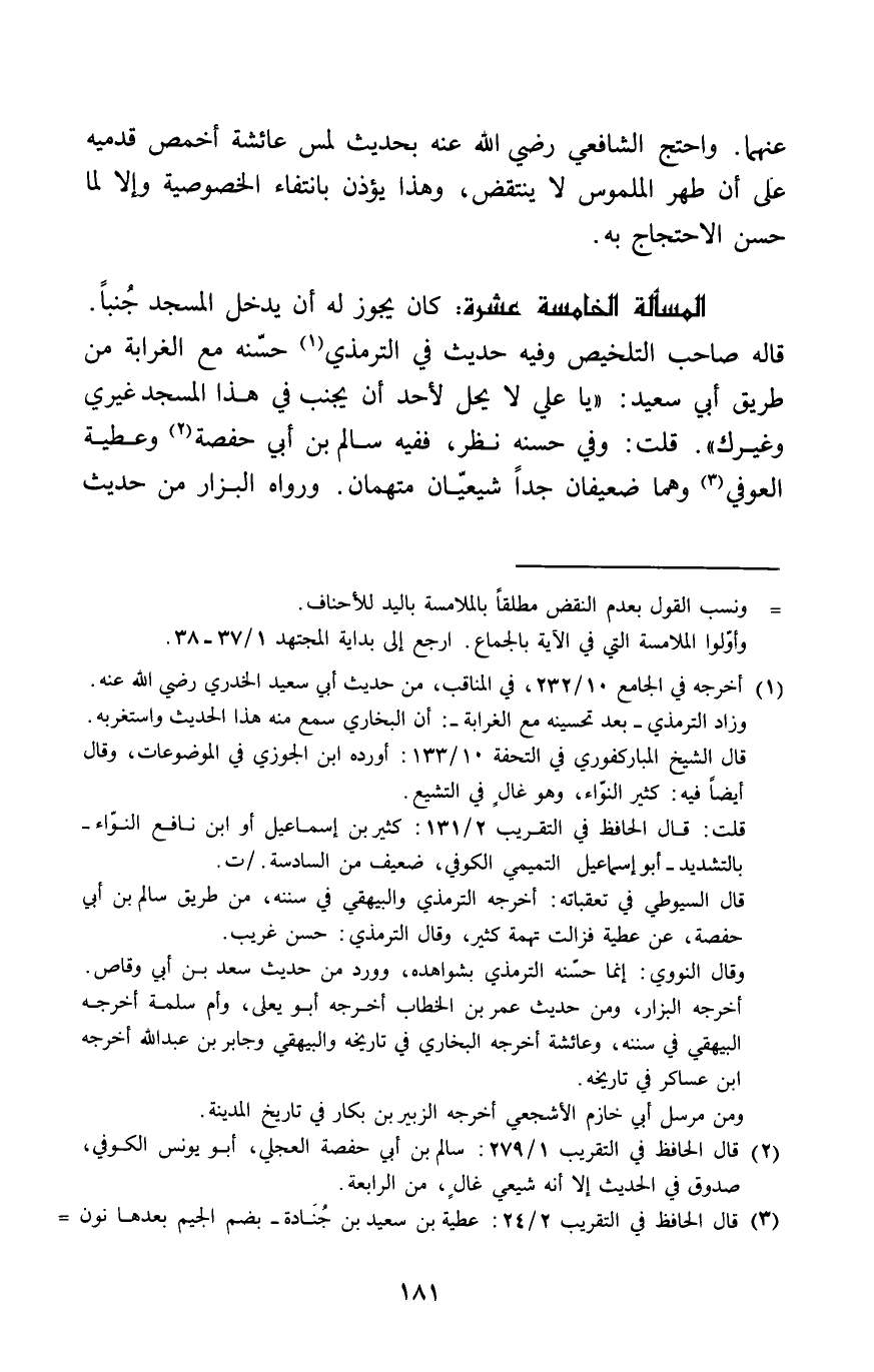الْمَسْأَلَة الْخَامِسَة عشرَة كَانَ يجوز لَهُ أَن يدْخل الْمَسْجِد جنبا