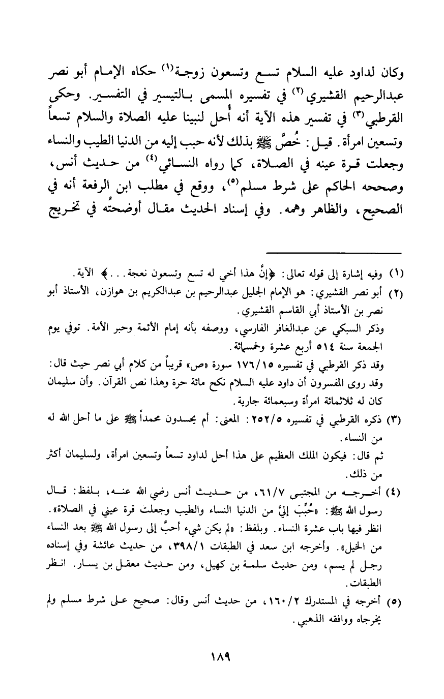 وَكَانَ لداود عَلَيْهِ السَّلَام تسع وَتسْعُونَ زَوْجَة حَكَاهُ الإِمَام أَبُو نصر عبد الرَّحِيم الْقشيرِي فِي تَفْسِيره الْمُسَمّى بالتيسير فِي التَّفْسِير