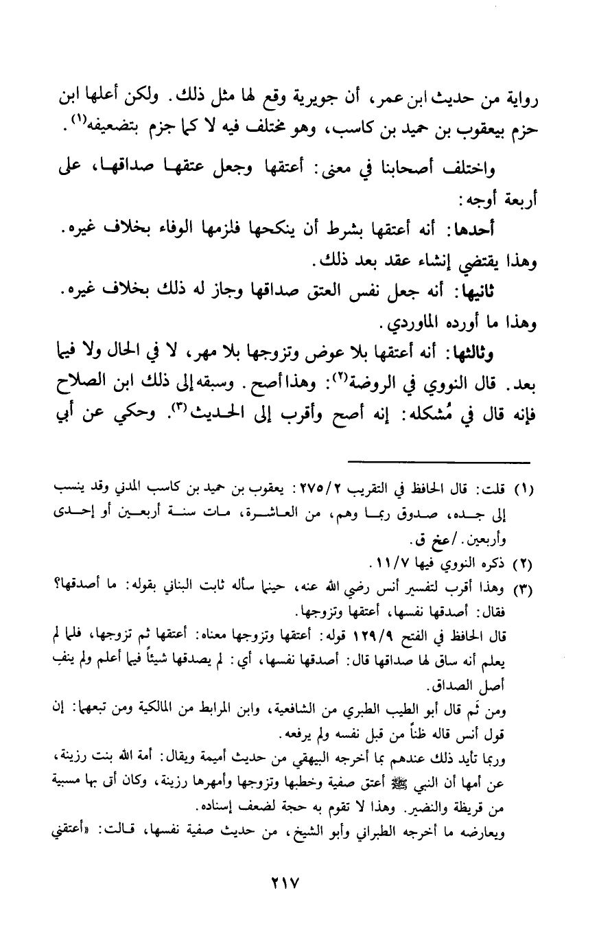 ثَانِيهَا أَنه جعل نفس الْعتْق صَدَاقهَا وَجَاز لَهُ ذَلِك بِخِلَاف غَيره