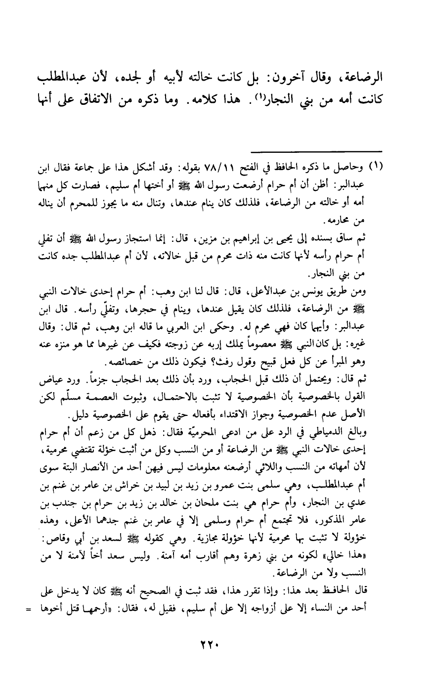 الرضَاعَة وَقَالَ آخَرُونَ بل كَانَت خَالَته لِأَبِيهِ أَو لجده لِأَن عبد الْمطلب كَانَت أمه من بني بني النجار هَذَا كَلَامه