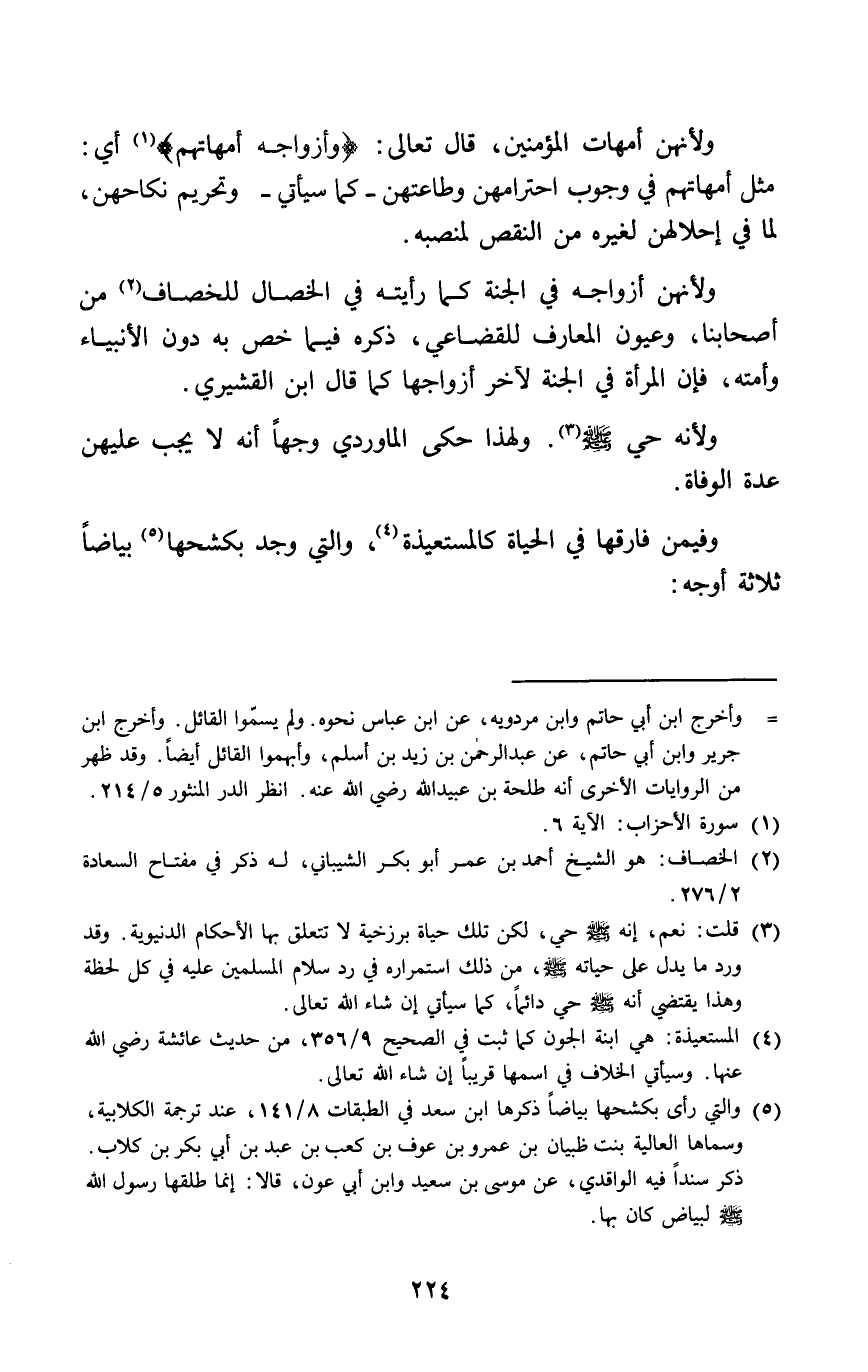 ولأنهن أَزوَاجه فِي الْجنَّة كَمَا رَأَيْته فِي الْخِصَال للخصاف من أَصْحَابنَا وعيون المعارف للقضاعي ذكره فِيمَا خص بِهِ دون الْأَنْبِيَاء وَأمته فَإِن الْمَرْأَة فِي الْجنَّة لآخر أزواجها كَمَا قَالَ ابْن الْقشيرِي