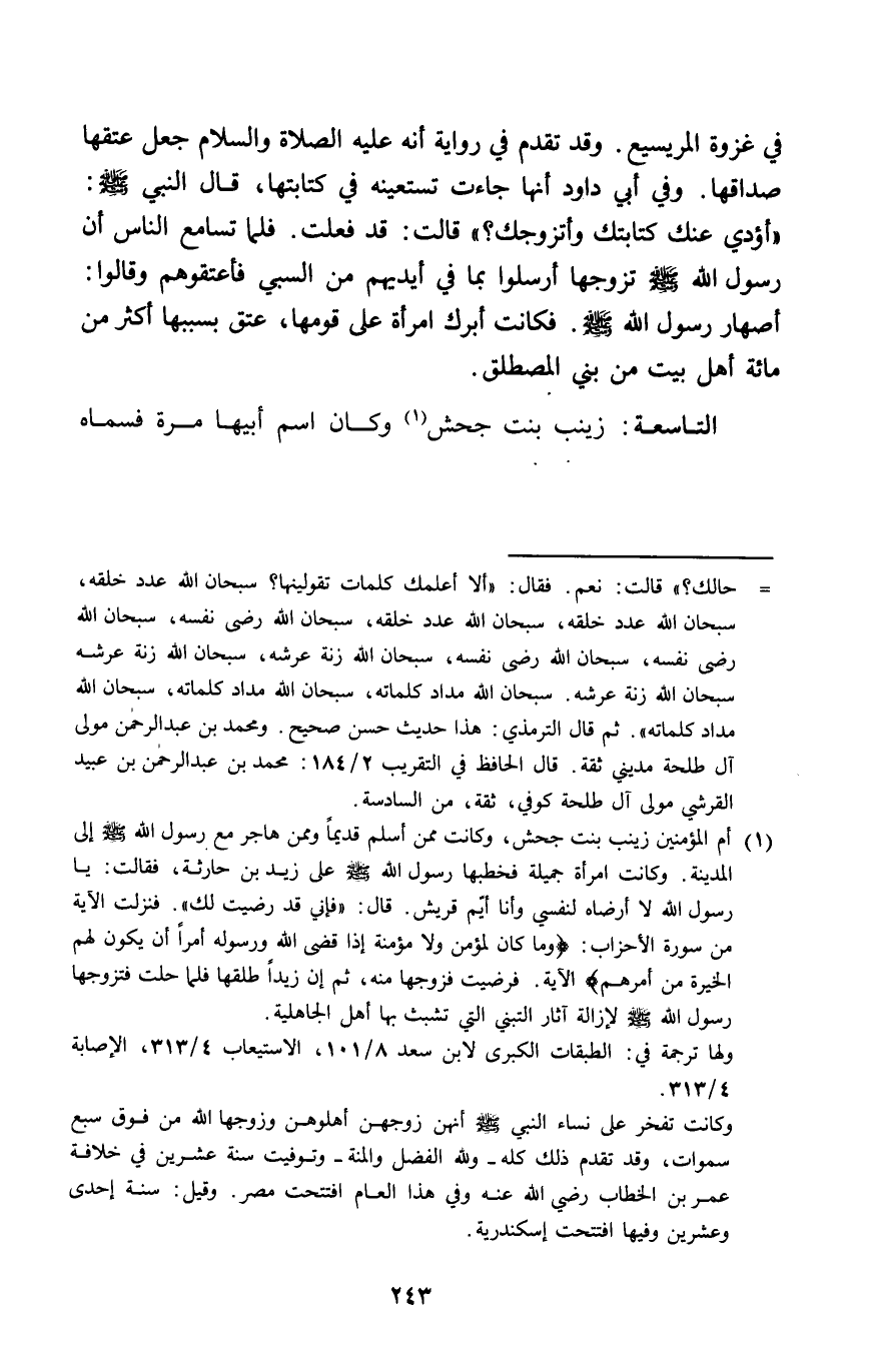 التَّاسِعَة زَيْنَب بنت جحش وَكَانَ اسْم أَبِيهَا مرّة فَسَماهُ
