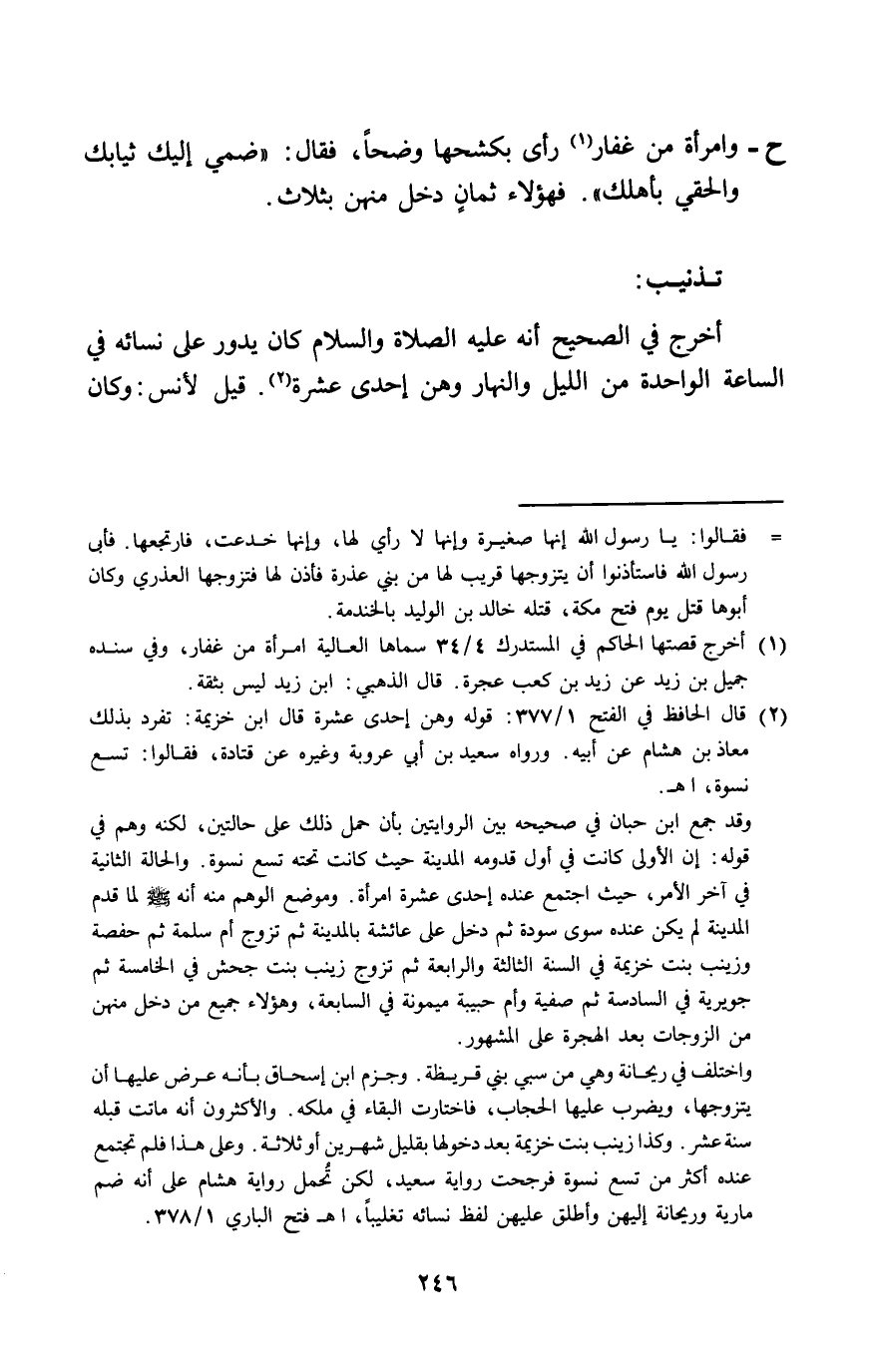 أخرج فِي الصَّحِيح أَنه عَلَيْهِ السَّلَام كَانَ يَدُور على نِسَائِهِ فِي السَّاعَة الْوَاحِدَة من اللَّيْل وَالنَّهَار وَهن إِحْدَى عشرَة قيل لأنس وَكَانَ