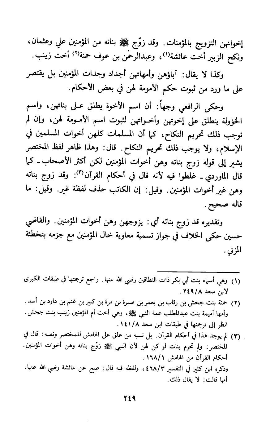 قَالَ وَهَذَا ظَاهر لفظ الْمُخْتَصر يُشِير إِلَى قَوْله زوج بَنَاته وَهن أَخَوَات الْمُؤمنِينَ لَكِن أَكثر الْأَصْحَاب - كَمَا قَالَ الْمَاوَرْدِيّ - غلطوا فِيهِ لِأَنَّهُ قَالَ فِي أَحْكَام الْقُرْآن وَقد تزوج بَنَاته وَهن غير أَخَوَات الْمُؤمنِينَ