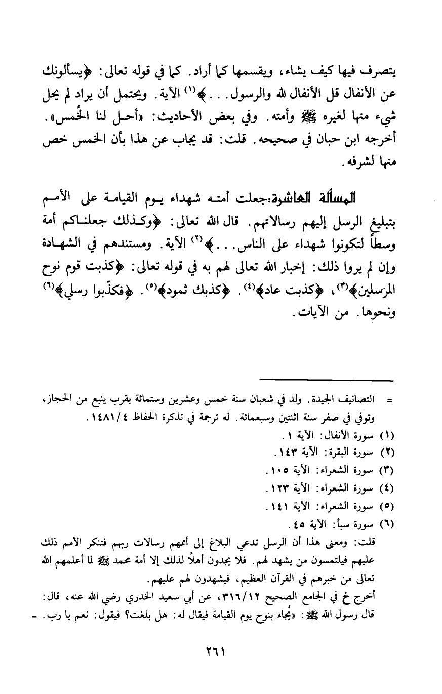 الْمَسْأَلَة الْعَاشِرَة جعلت أمته شُهَدَاء يَوْم الْقِيَامَة على الْأُمَم بتبليغ الرُّسُل إِلَيْهِم رسالاتهم