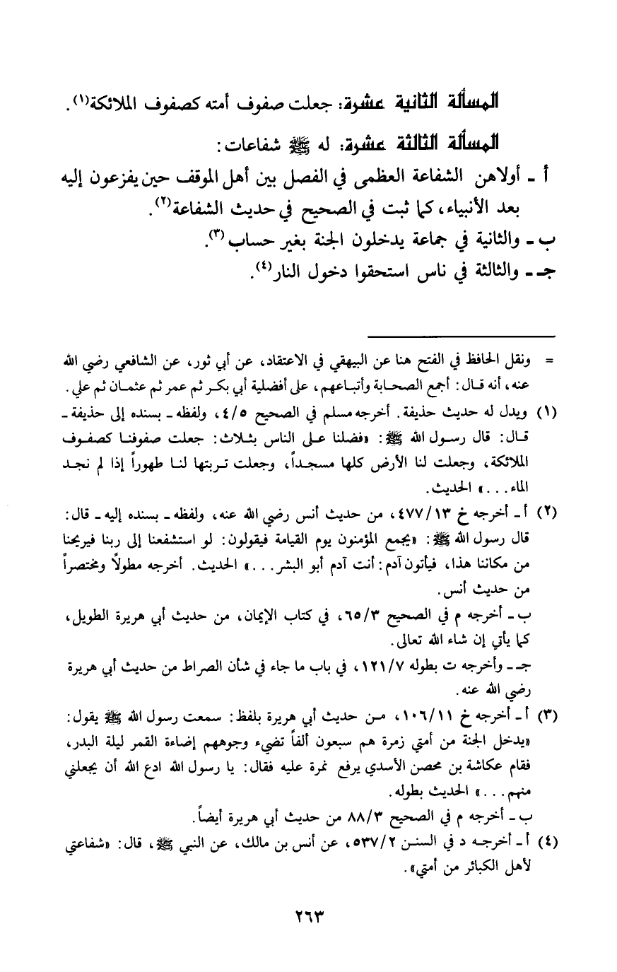 المسالة الثَّالِثَة عشرَة لَهُ صلى الله عَلَيْهِ وَسلم شفاعات
