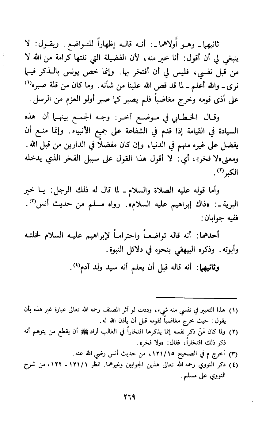 وَيَقُول لَا يَنْبَغِي لي أَن أَقُول أَنا خير مِنْهُ لِأَن الْفَضِيلَة الَّتِي نلتها كَرَامَة من الله لَا من قبل نَفسِي فَلَيْسَ لي أَن أفتخر بهَا