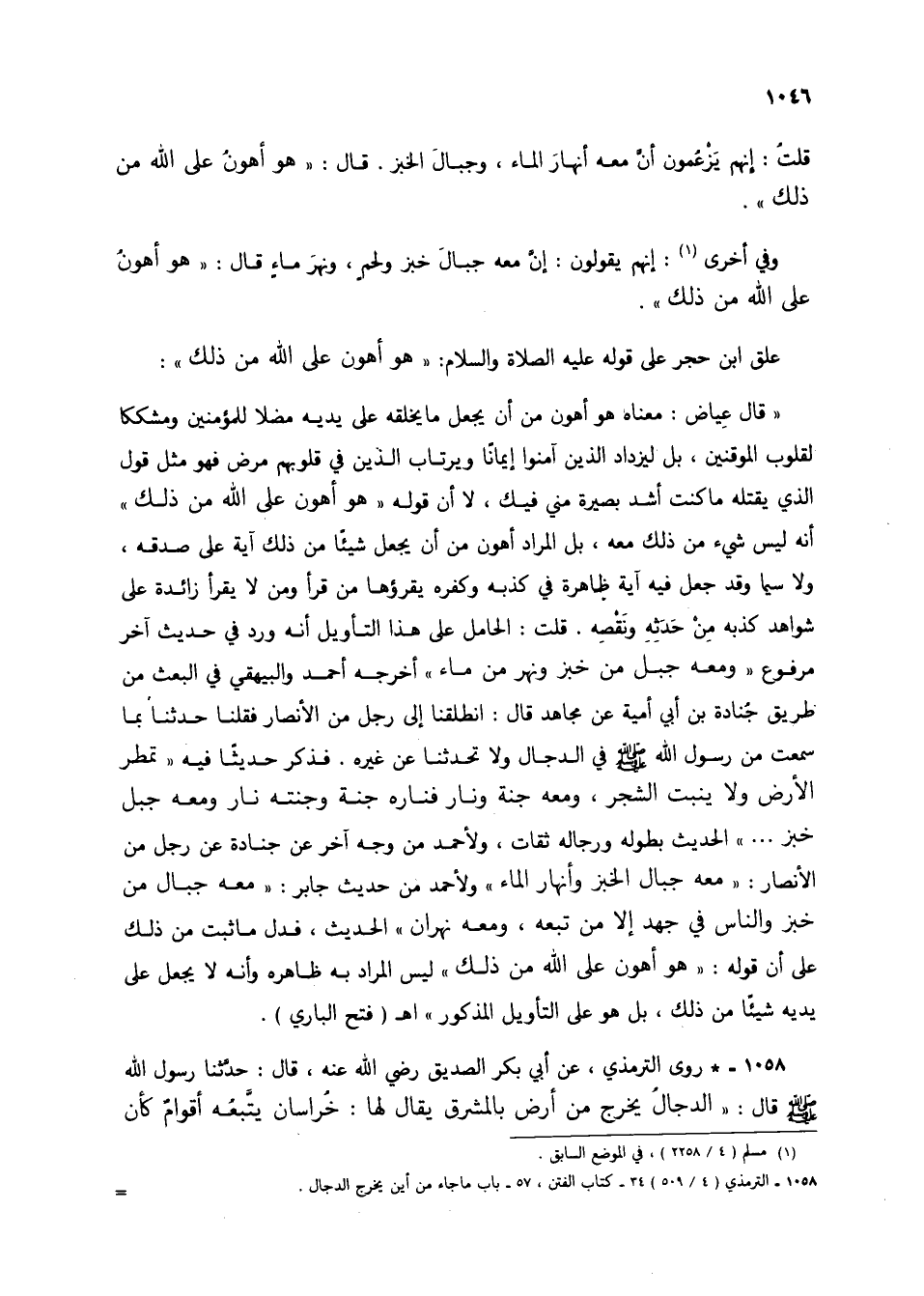 1058 - * روى الترمذي، عن أبي بكر الصديق رضي الله عنه، قال: حدثنا رسول الله صلى الله عليه وسلم قال: "الدجال يخرج من أرض بالمشرق يقال لها: خراسان يتبعه أقام كأن