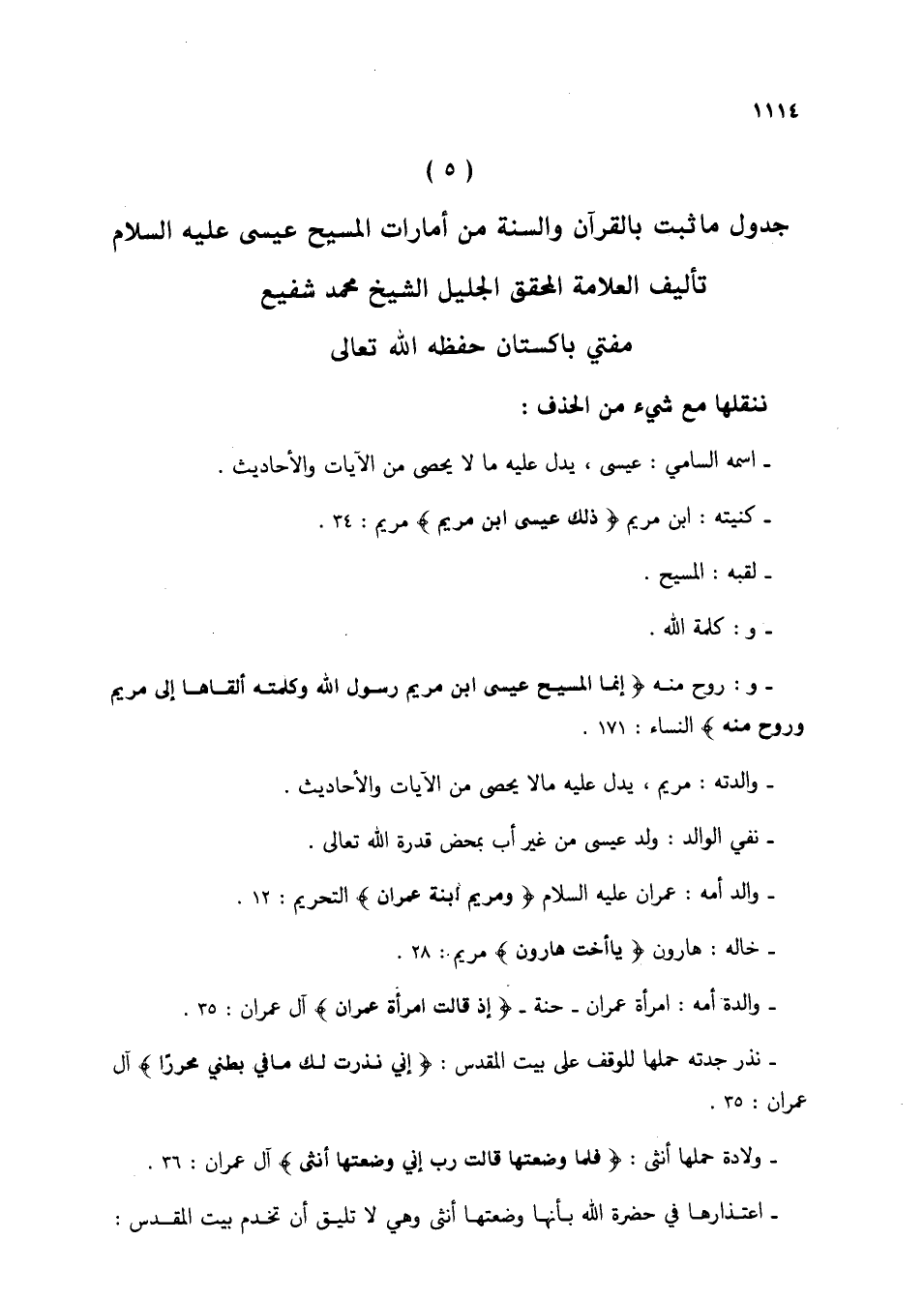 جدول ما ثبت بالقرآن والسنة من أمارات المسيح عيسى عليه السلام
