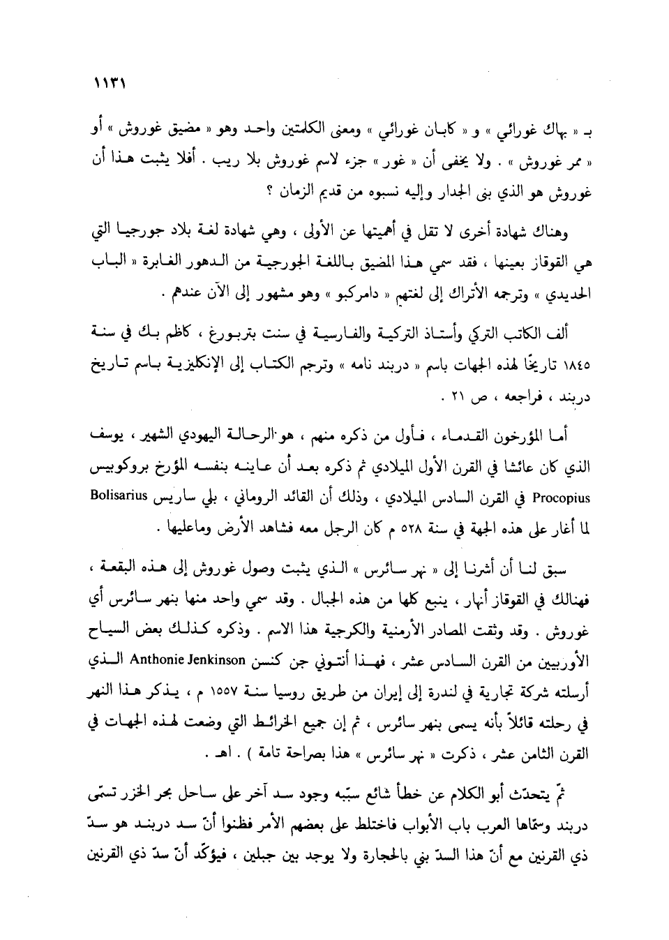 بـ"بهاك غورائي" و"كابان غورائي" ومعنى الكلمتين واحد وهو "مضيق غوروش" أو "ممر غوروش". ولا يخفى أن "غور" جزء لاسم غوروش بلا ريب. أفلا يثبت هذا أن غوروش هو الذي بنى الجدار وإليه نسبوه من قديم الزمان؟