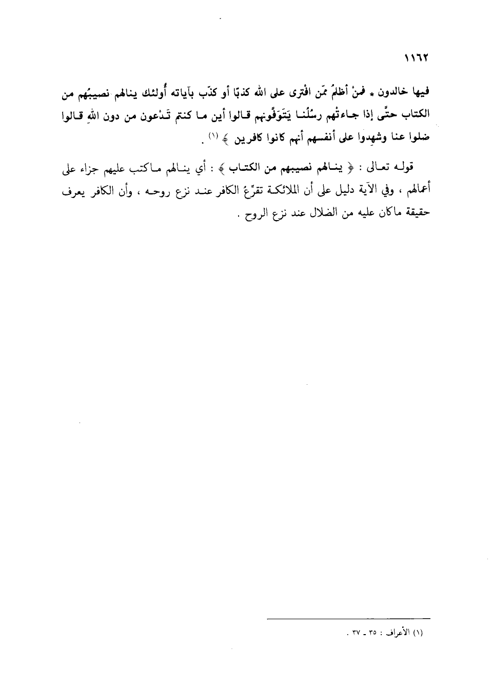 فِيهَا خَالِدُونَ * فَمَنْ أَظْلَمُ مِمَّنِ افْتَرَى عَلَى اللَّهِ كَذِبًا أَوْ كَذَّبَ بِآيَاتِهِ أُولَئِكَ يَنَالُهُمْ نَصِيبُهُمْ مِنَ الْكِتَابِ حَتَّى إِذَا جَاءَتْهُمْ رُسُلُنَا يَتَوَفَّوْنَهُمْ قَالُوا أَيْنَ مَا كُنْتُمْ تَدْعُونَ مِنْ دُونِ اللَّهِ قَالُوا ضَلُّوا عَنَّا وَشَهِدُوا عَلَى أَنْفُسِهِمْ أَنَّهُمْ كَانُوا كَافِرِينَ} (1).