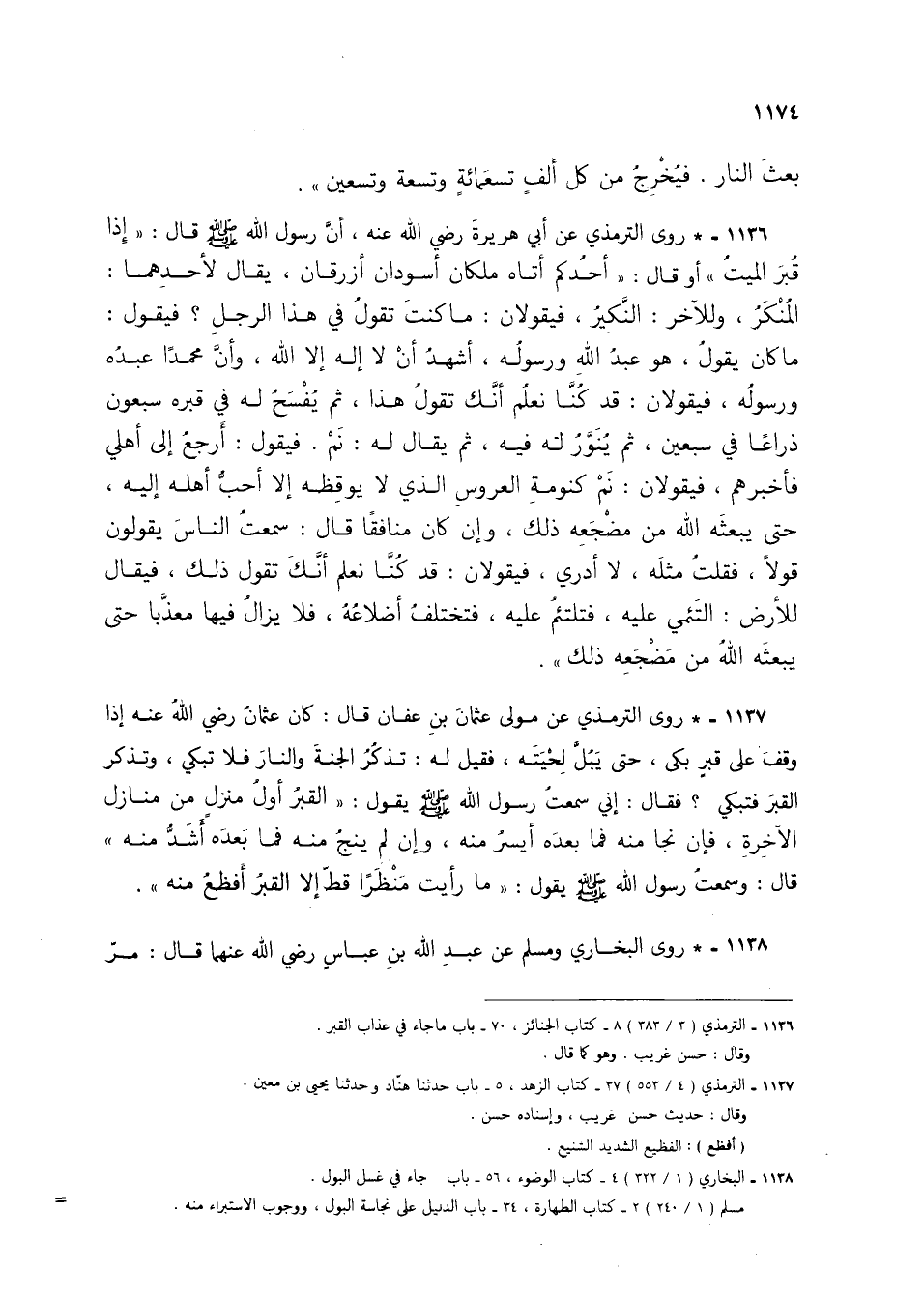 1136 - الترمذي (3/ 383) 8 - كتاب الجنائز، 70 - باب ما جاء في عذاب القبر.