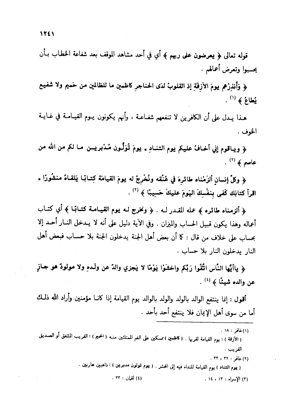 {يَاأَيُّهَا النَّاسُ اتَّقُوا رَبَّكُمْ وَاخْشَوْا يَوْمًا لَا يَجْزِي وَالِدٌ عَنْ وَلَدِهِ وَلَا مَوْلُودٌ هُوَ جَازٍ عَنْ وَالِدِهِ شَيْئًا} (4).