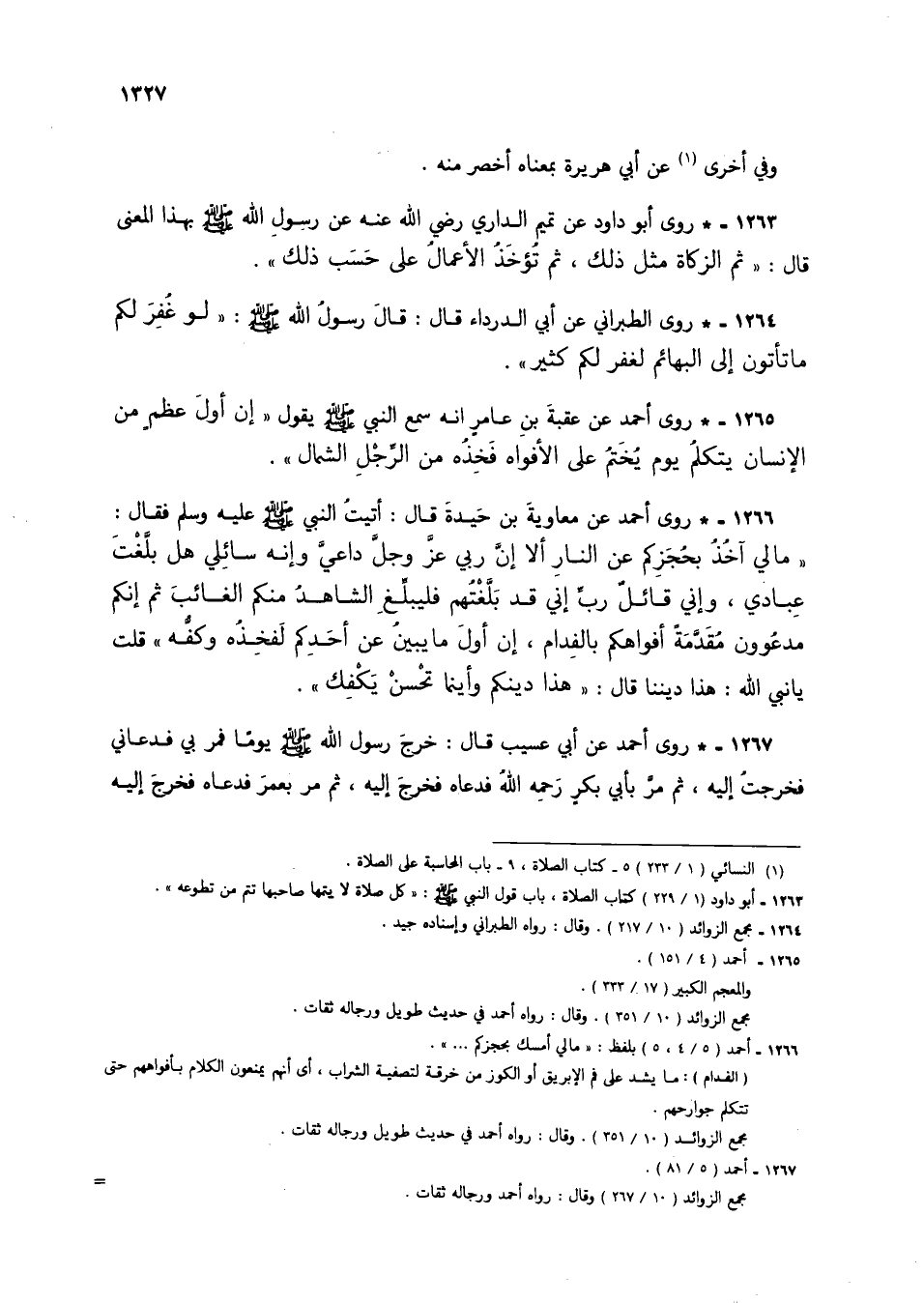 1263 - * روى أبو داود عن تميم الداري رضي الله عنه عن رسول الله صلى الله عليه وسلم بهذا المعنى قال: "ثم الزكاة مثل ذلك، ثم تؤخذ الأعمال على حسب ذلك".