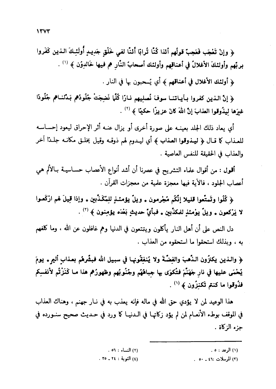 {إِنَّ الَّذِينَ كَفَرُوا بِآيَاتِنَا سَوْفَ نُصْلِيهِمْ نَارًا كُلَّمَا نَضِجَتْ جُلُودُهُمْ بَدَّلْنَاهُمْ جُلُودًا غَيْرَهَا لِيَذُوقُوا الْعَذَابَ إِنَّ اللَّهَ كَانَ عَزِيزًا حَكِيمًا} (2).