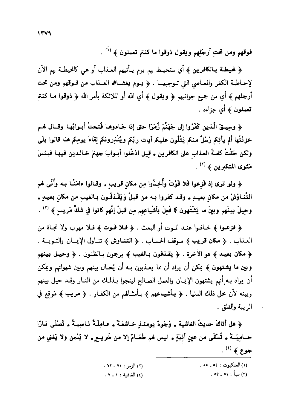 فَوْقِهِمْ وَمِنْ تَحْتِ أَرْجُلِهِمْ وَيَقُولُ ذُوقُوا مَا كُنْتُمْ تَعْمَلُونَ} (1).