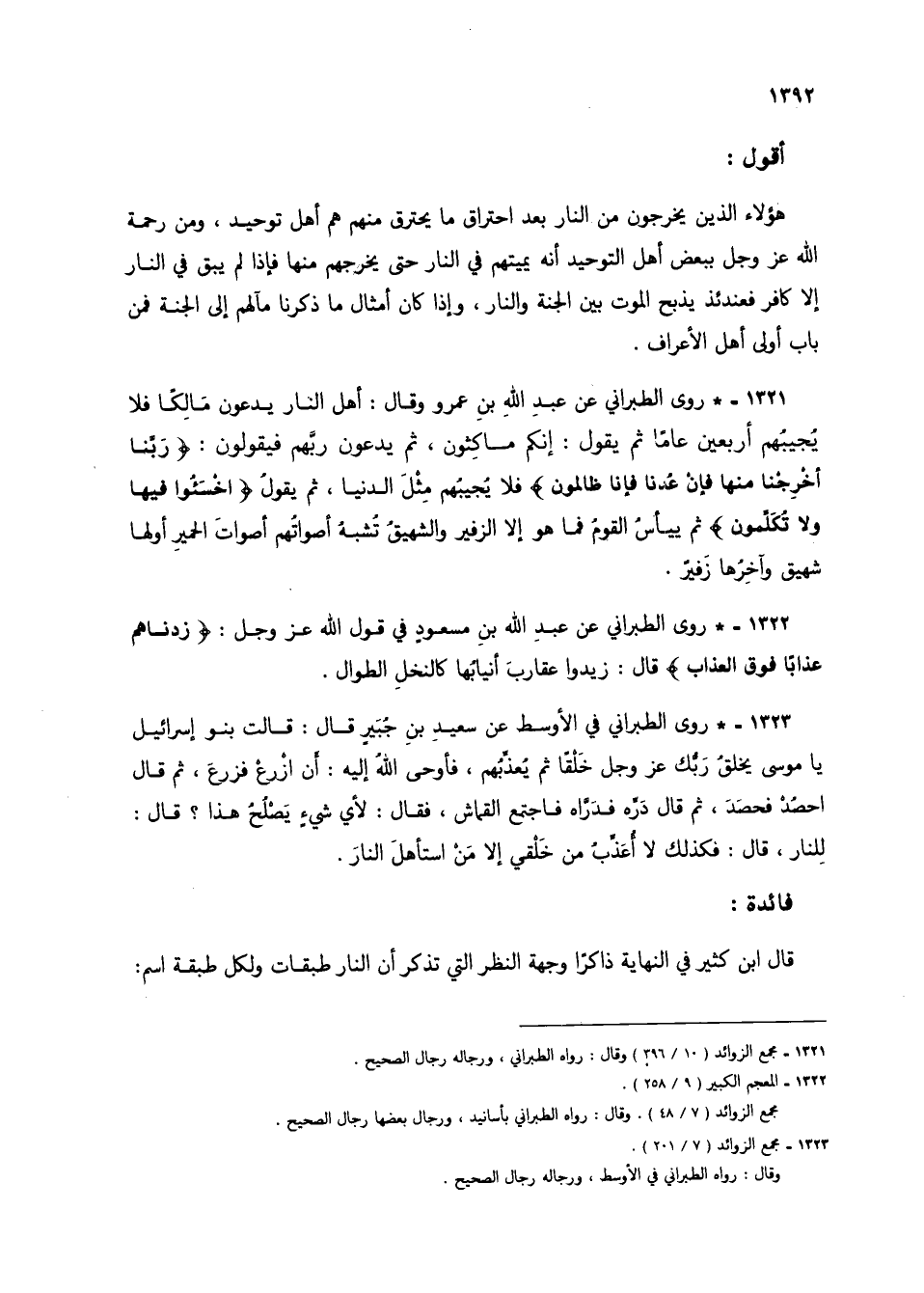 قال ابن كثير في النهاية ذاكرًا وجهة النظر التي تذكر أن النار طبقات ولكل طبقة اسم: