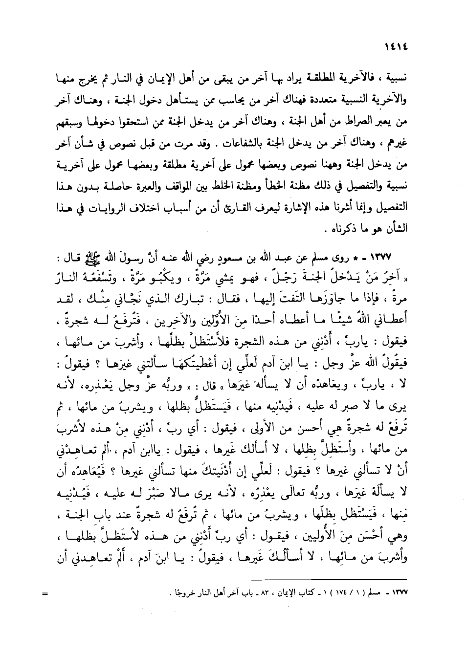 1377 - مسلم (1/ 174) 1 - كتاب الإيمان، 83 - باب آخر أهل النار خروجًا.