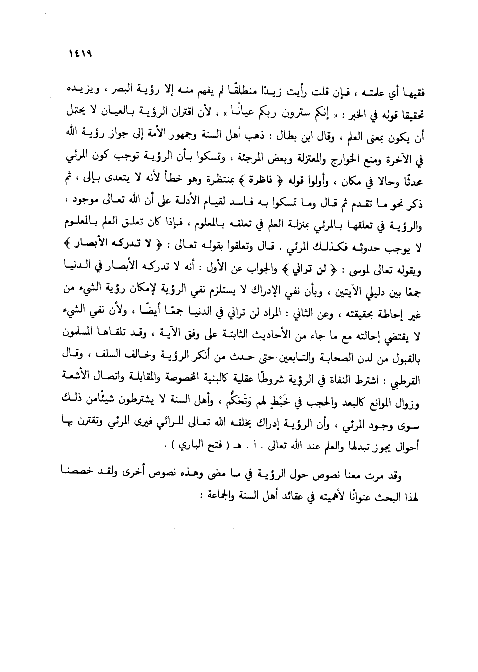وقد مرت معنا نصوص حول الرؤية في ما مضى وهذه نصوص أخرى ولقد خصصنا لهذا البحث عنوانًا لأهميته في عقائد أهل السنة والجماعة: