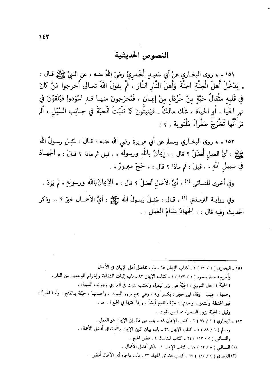 151 - البخاري (1/ 72) 2 - كتاب الإيمان 15 - باب تفاضل أهل الإيمان في الأعمال.