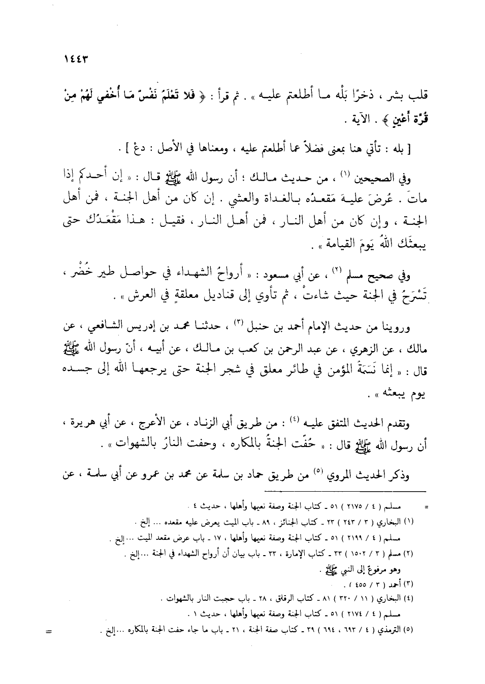 (4) البخاري (11/ 320) 81 - كتاب الرقاق، 28 - باب حجبت النار بالشهوات.