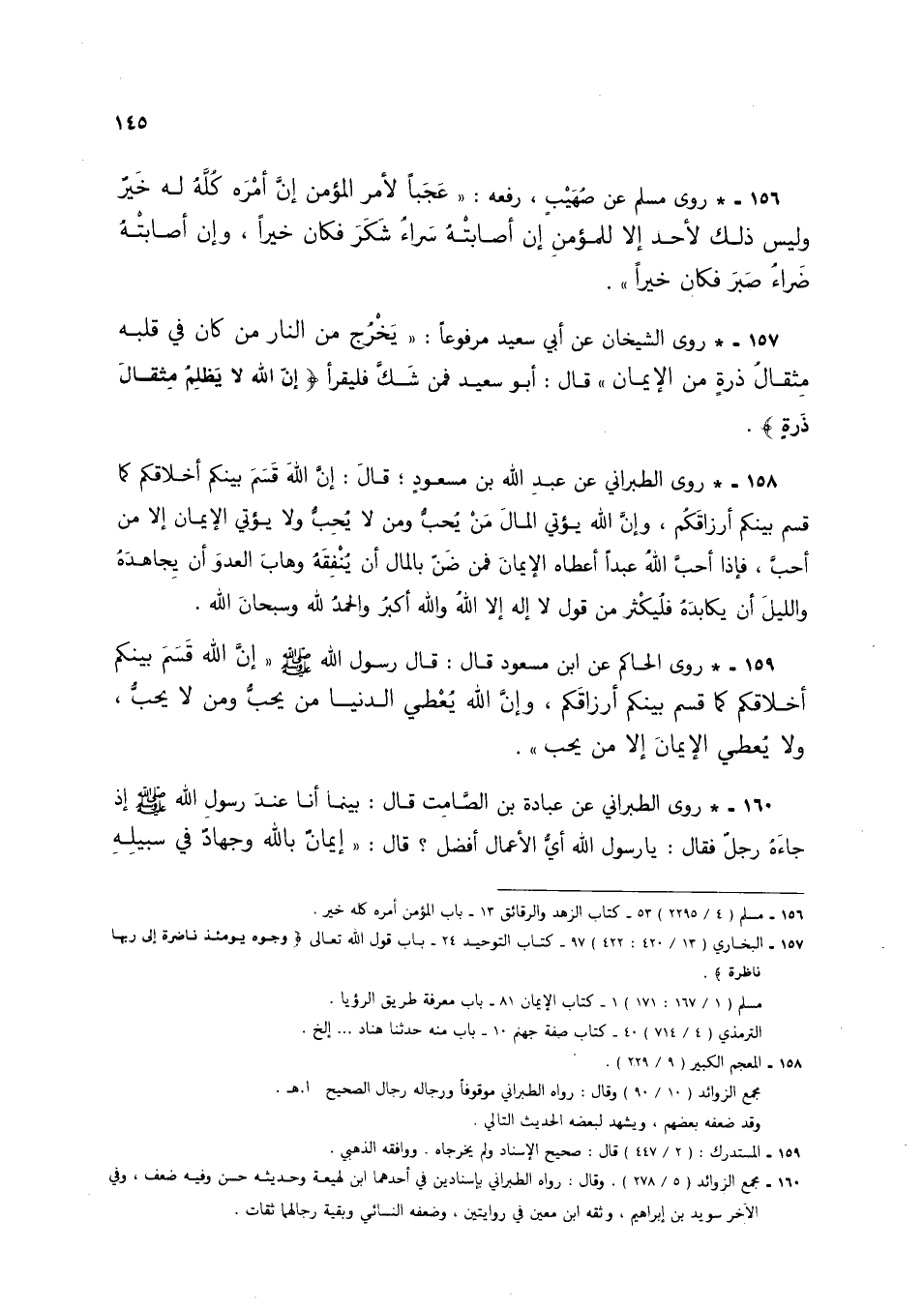 156 - * روى مسلم عن صهيب، رفعه: "عجباً لأمر المؤمن إن أمره كله له خير وليس ذلك لأحد إلا للمؤمن إن أصابته سراء شكر فكان خيراً، وإن أصابته ضراء صبر فكان خيراً".